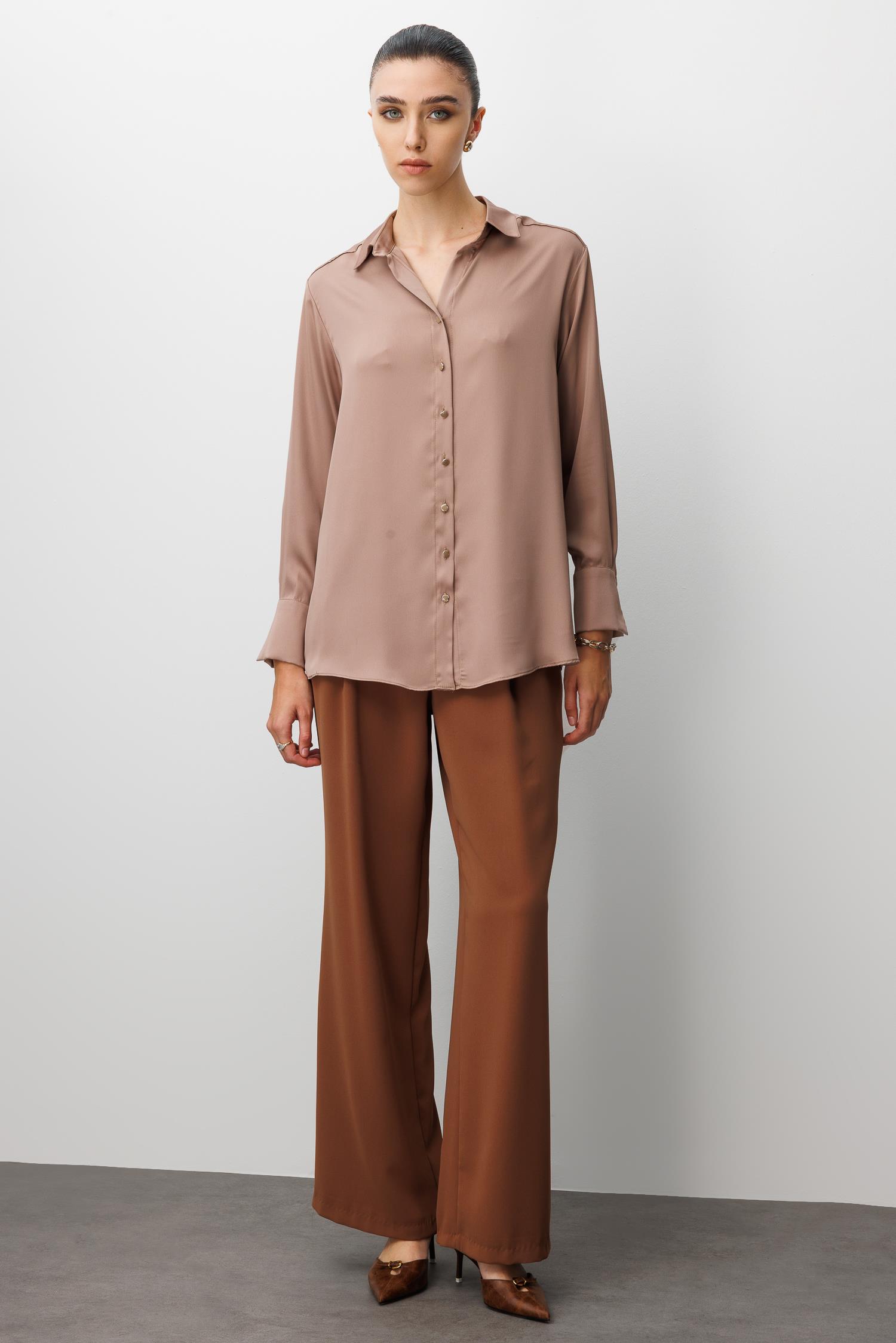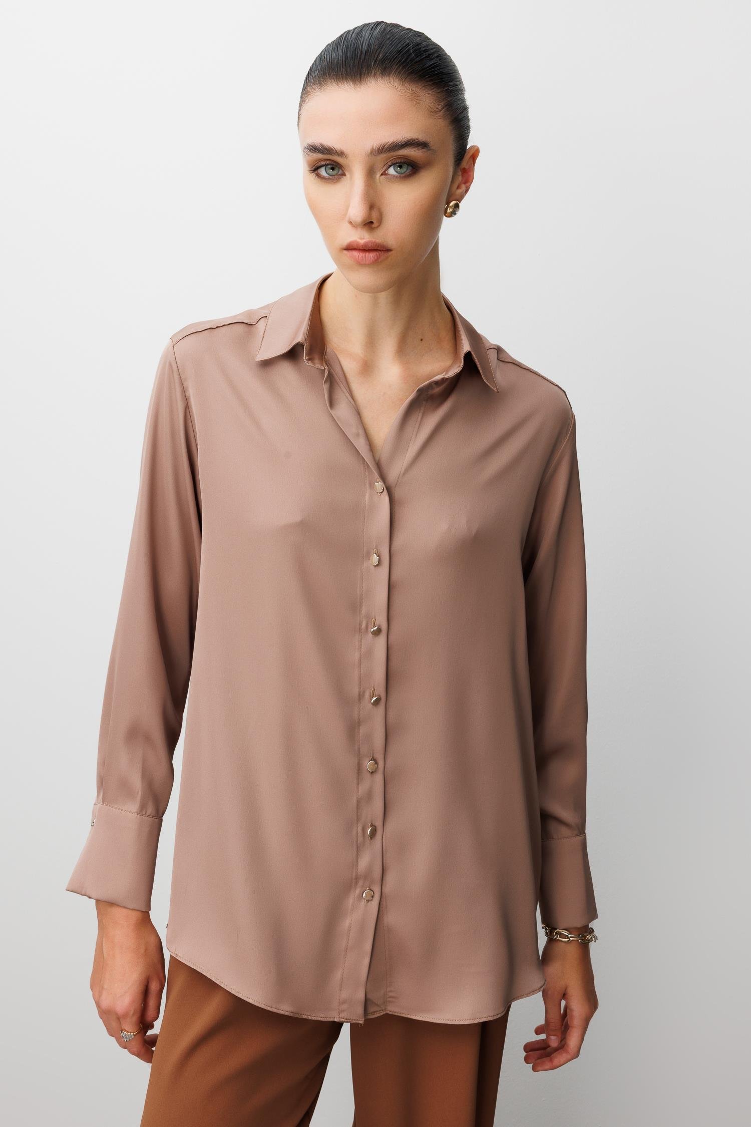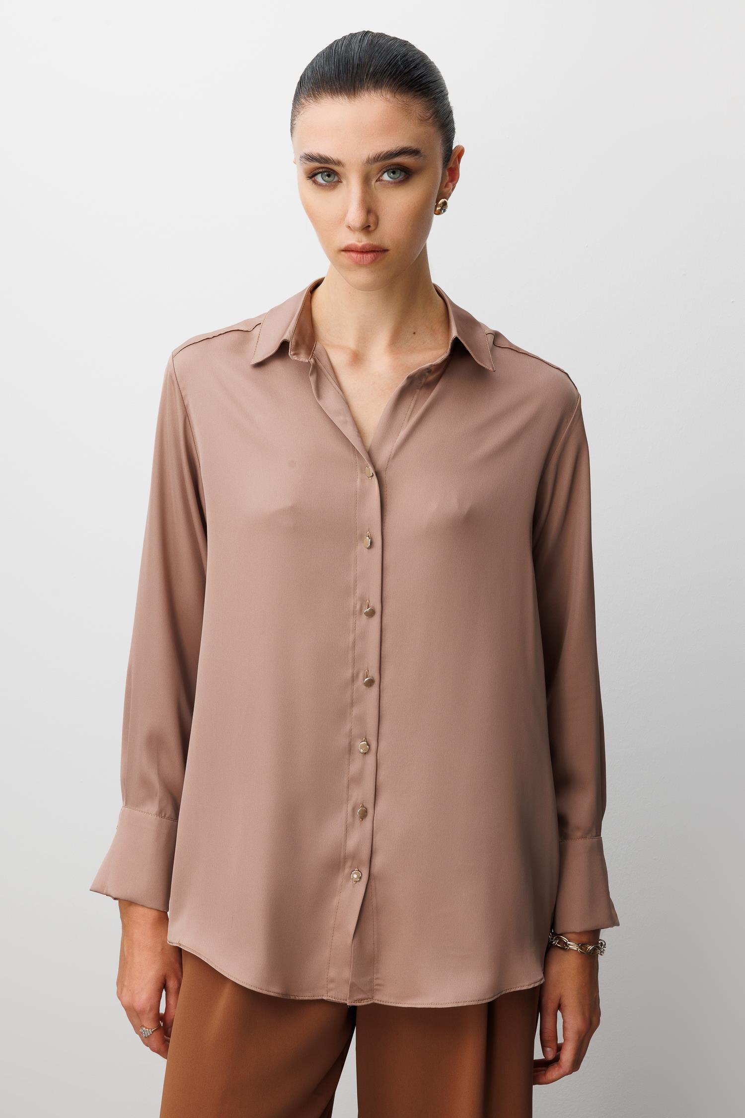 Modailgi Salaş Kalıp Saten Gömlek - Camel