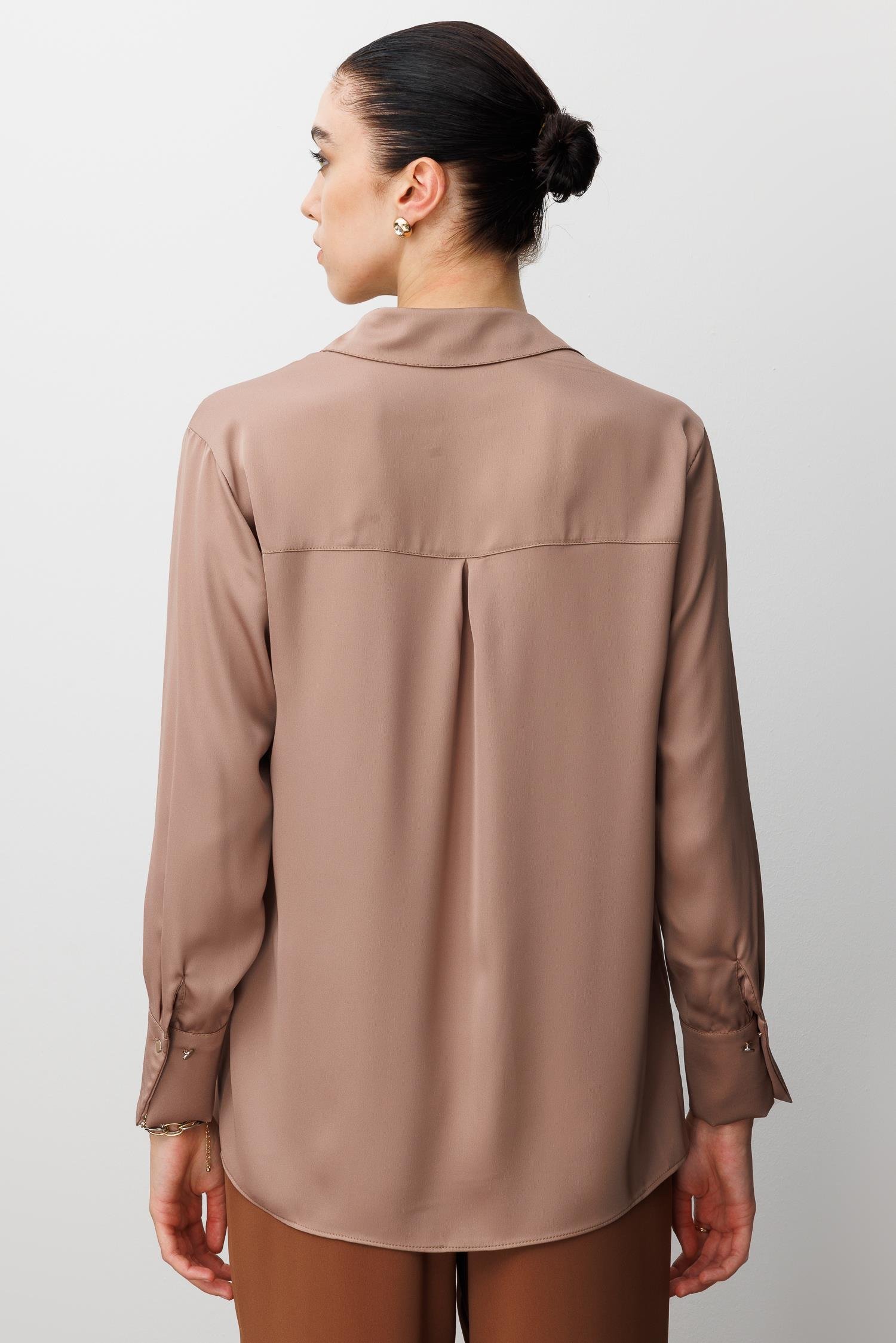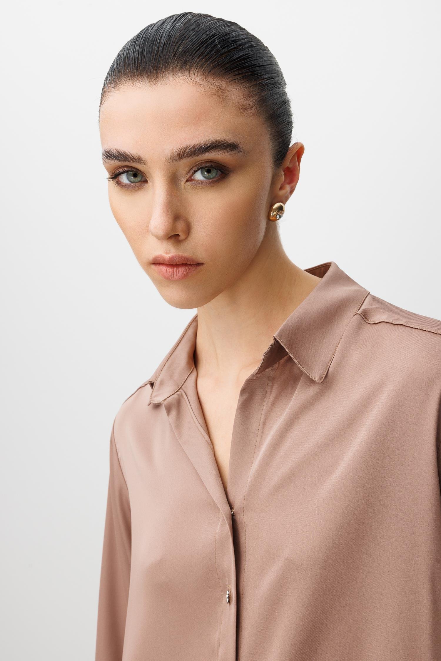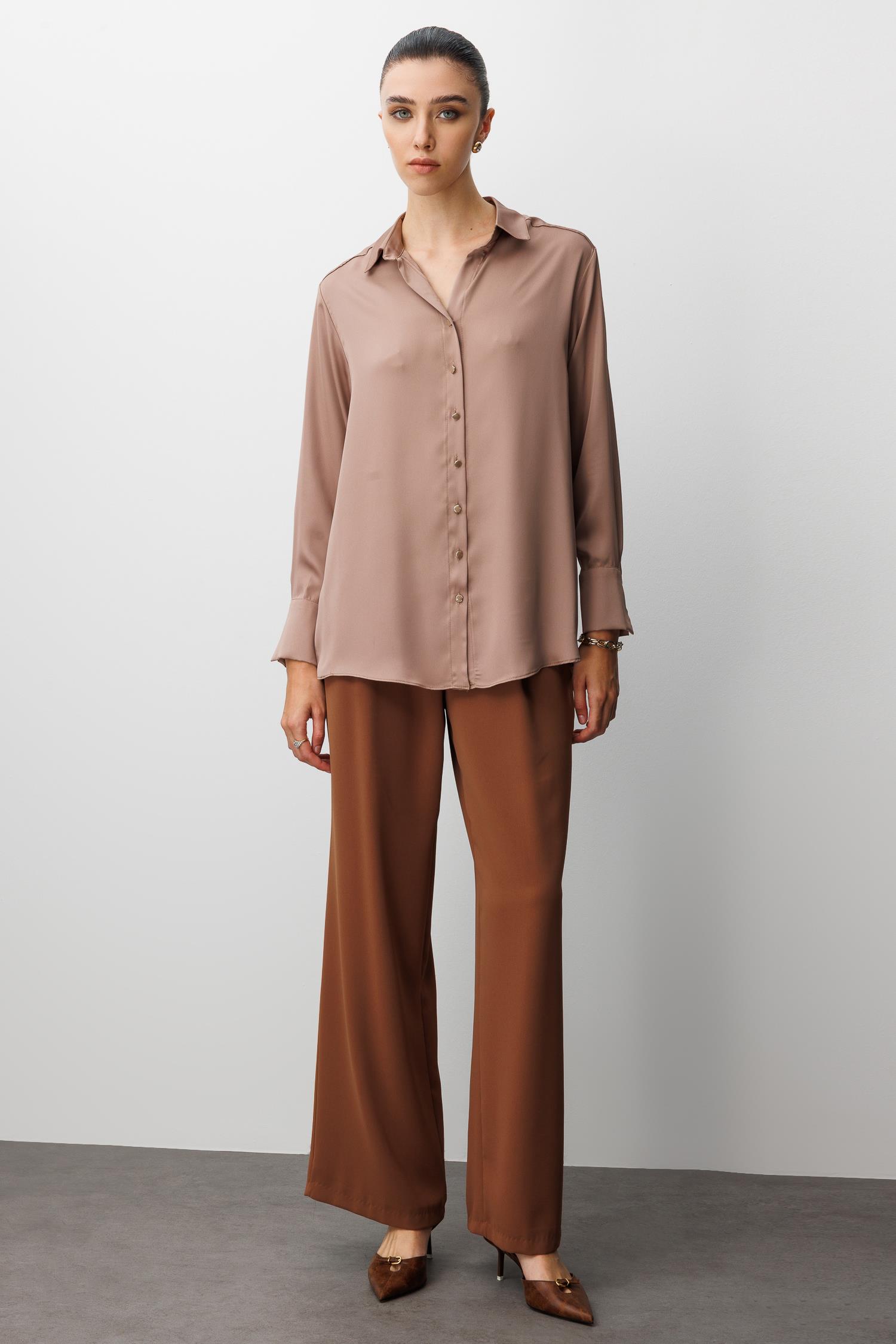 Modailgi Salaş Kalıp Saten Gömlek - Camel