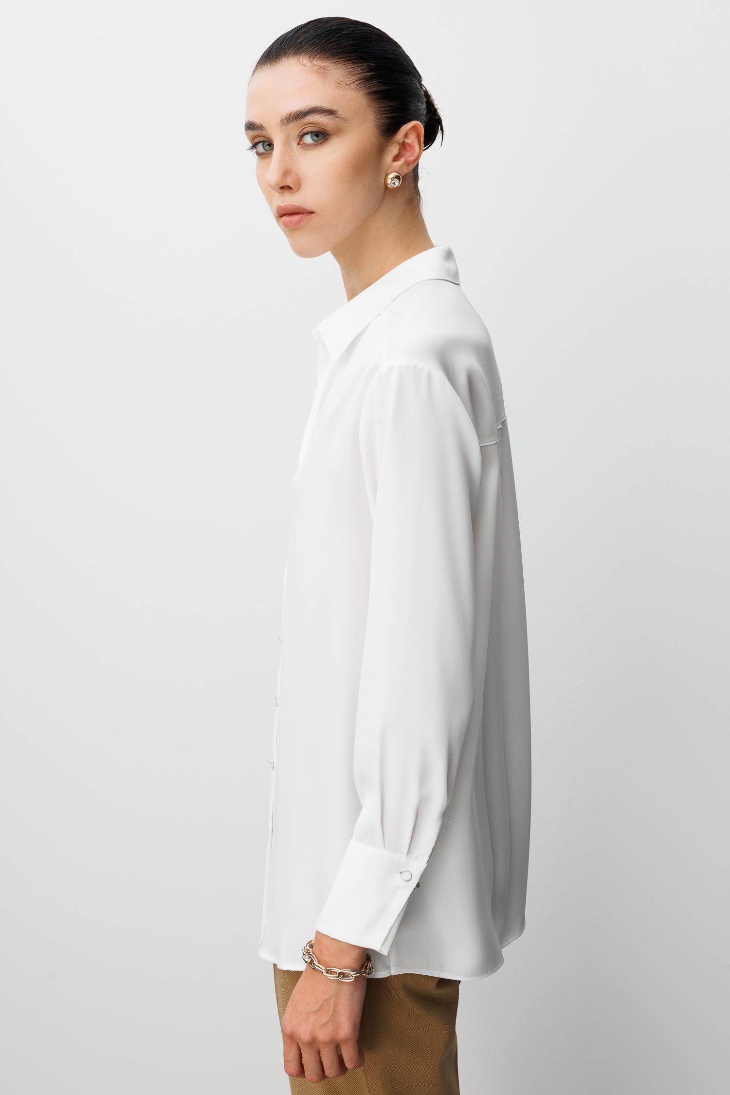 • Model: Salaş kesim, klasik yaka, uzun kollu gömlek