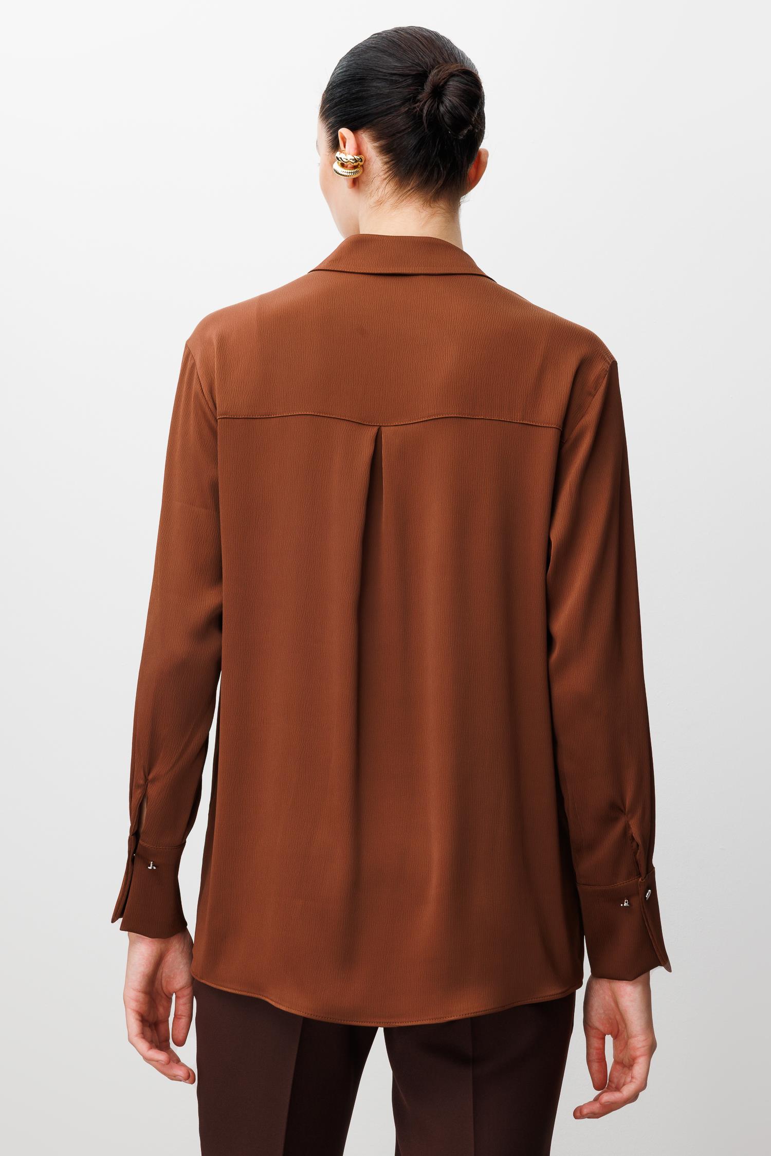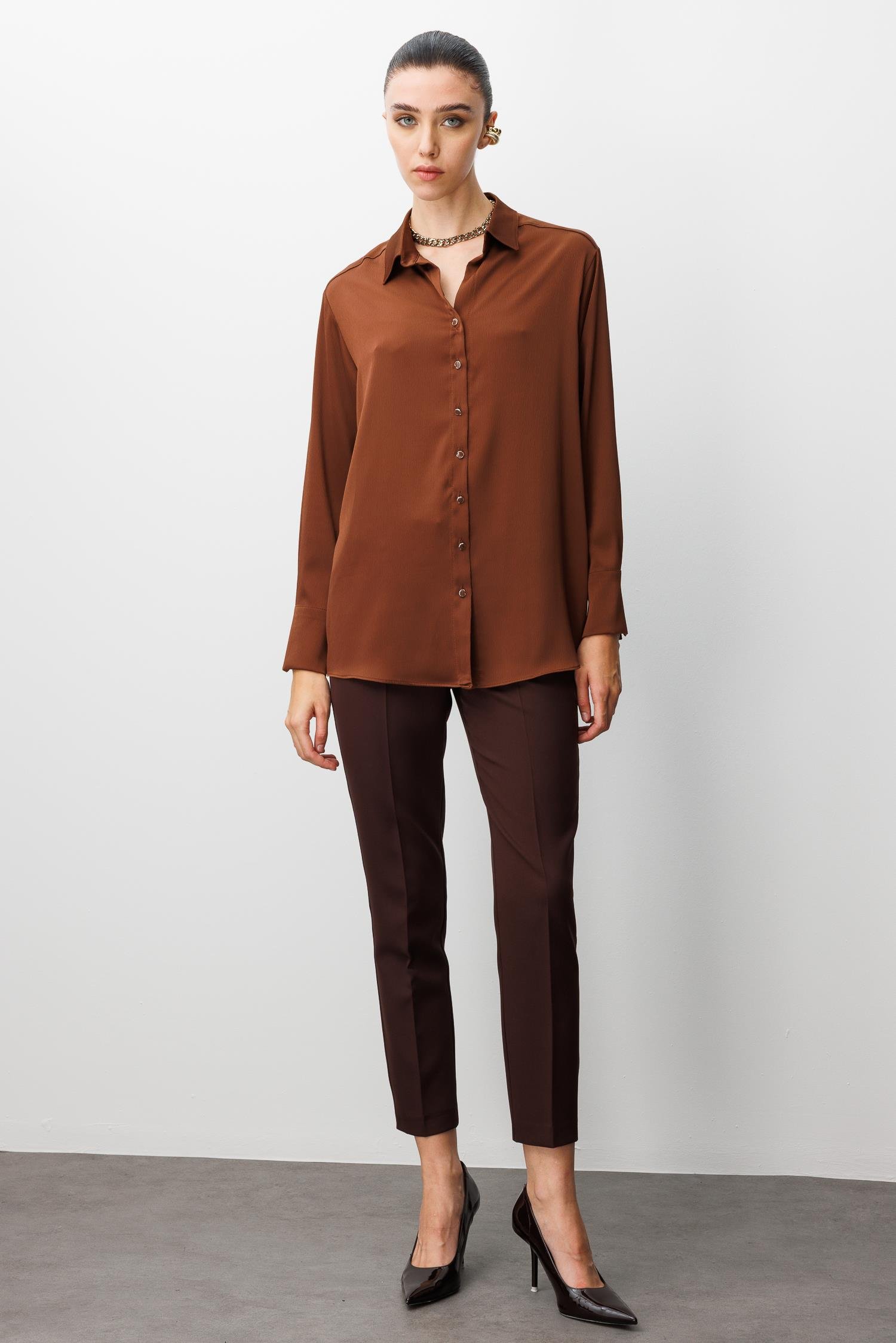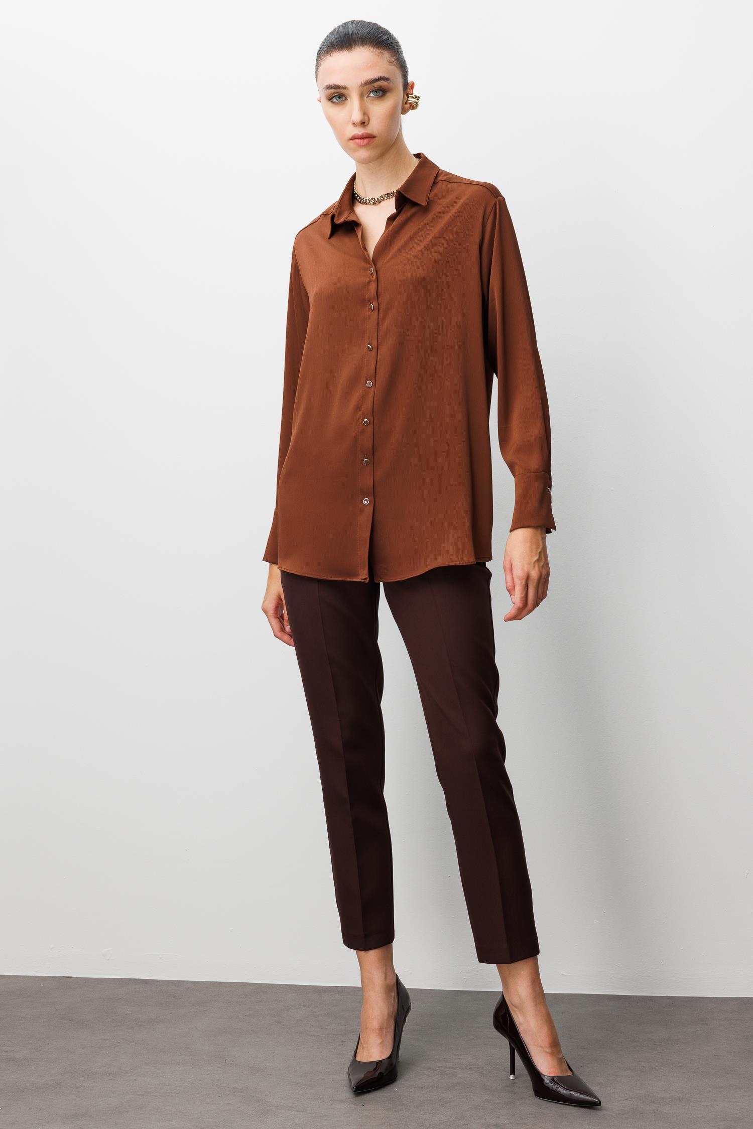 Modailgi Salaş Kalıp Saten Gömlek - Kahve