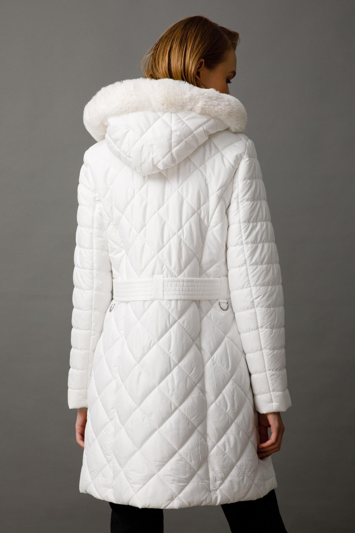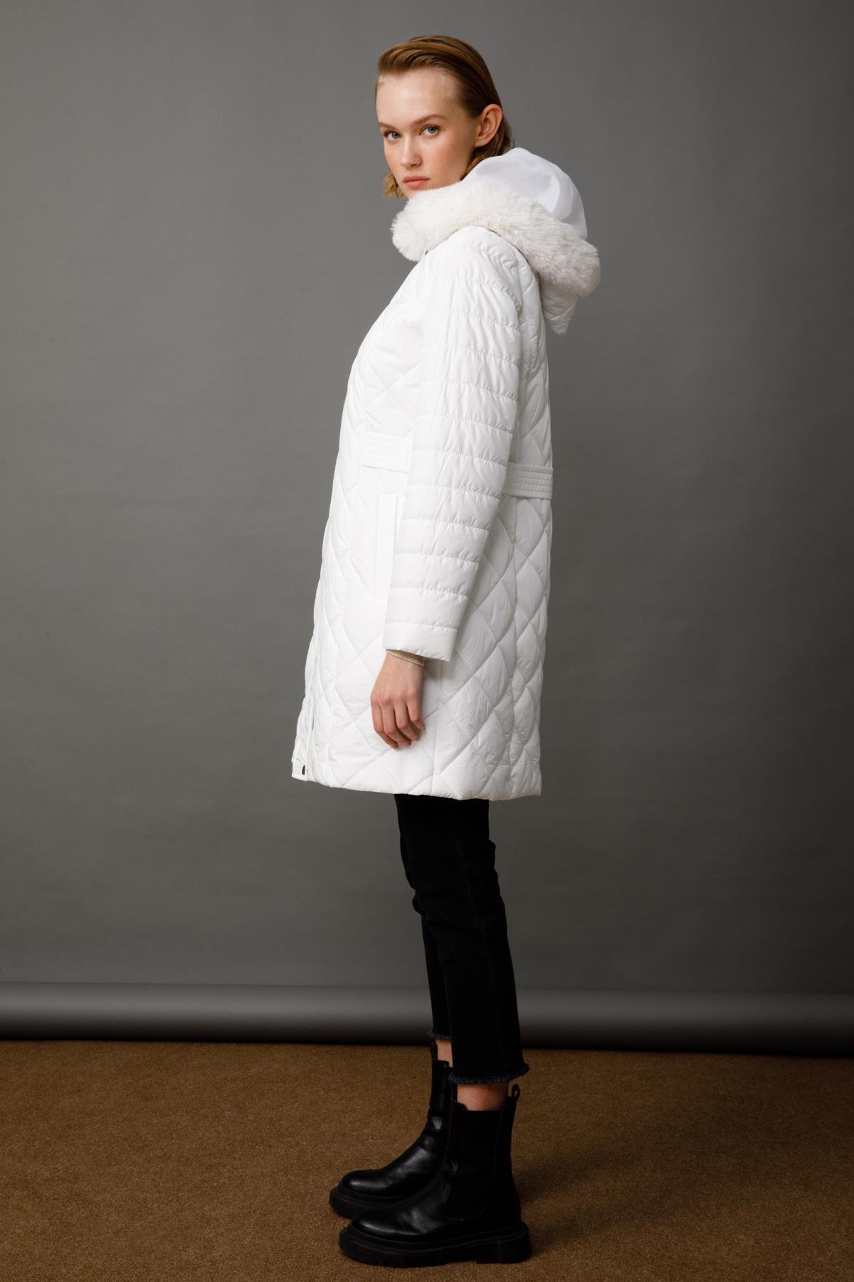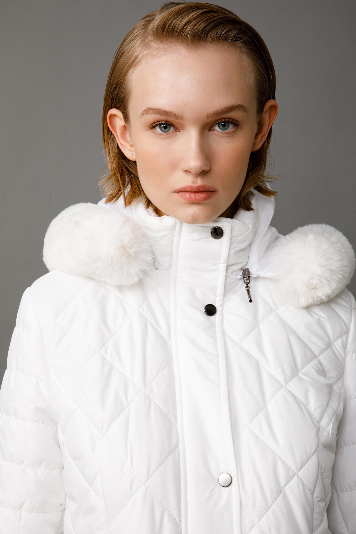 Kapüşon kenarında yumuşak ve şık Kürk/Tüy Detayı (Genellikle suni kürk).
