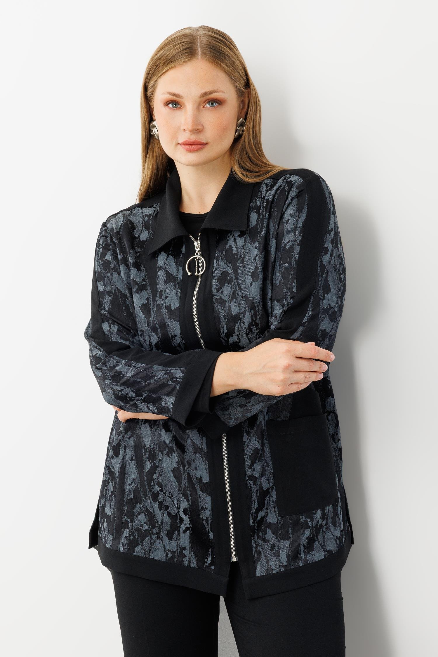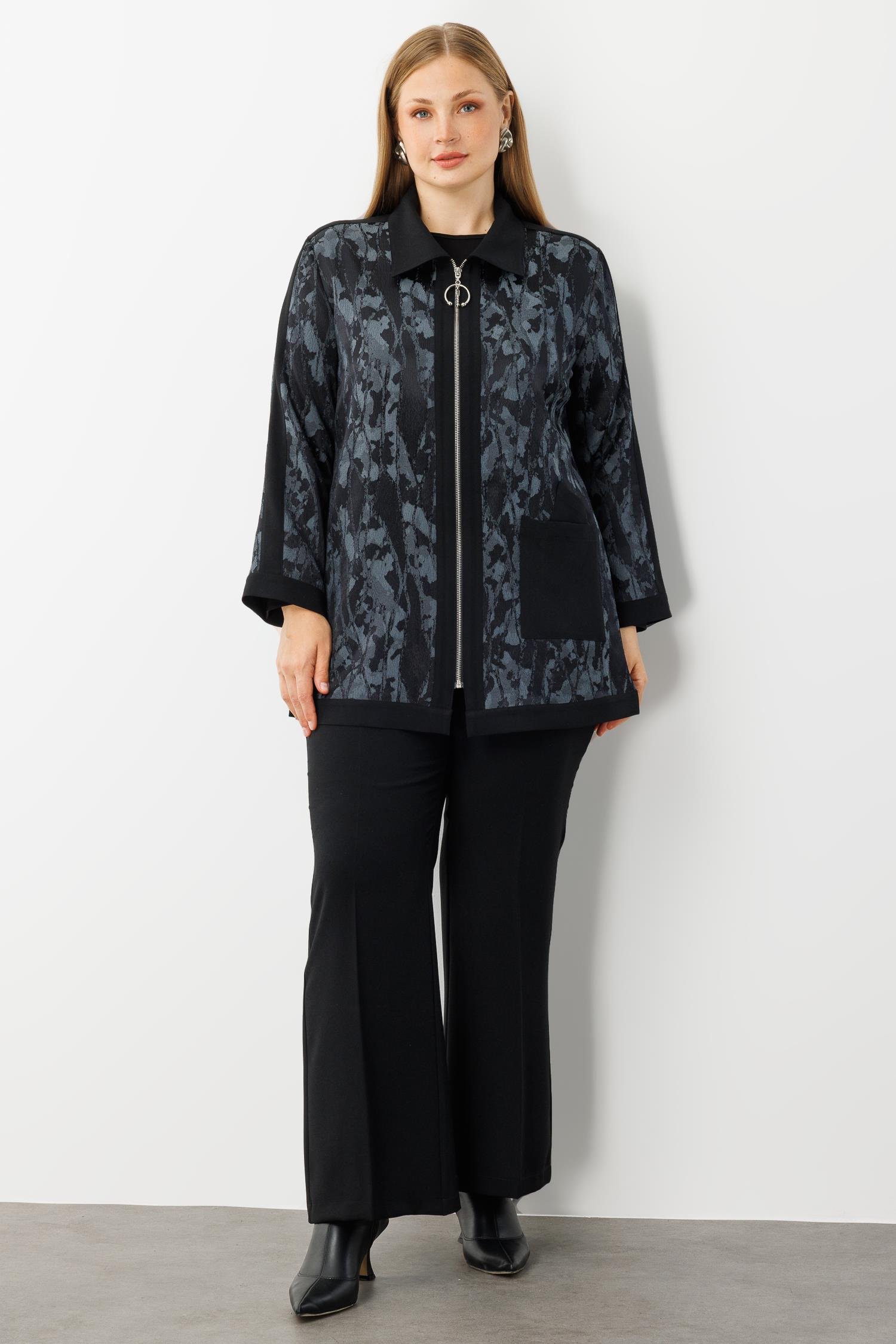 Modailgi Takma Kol Erkek Yaka Fermuarlı Tunik Antrasit (GLD260TNK40312-003)