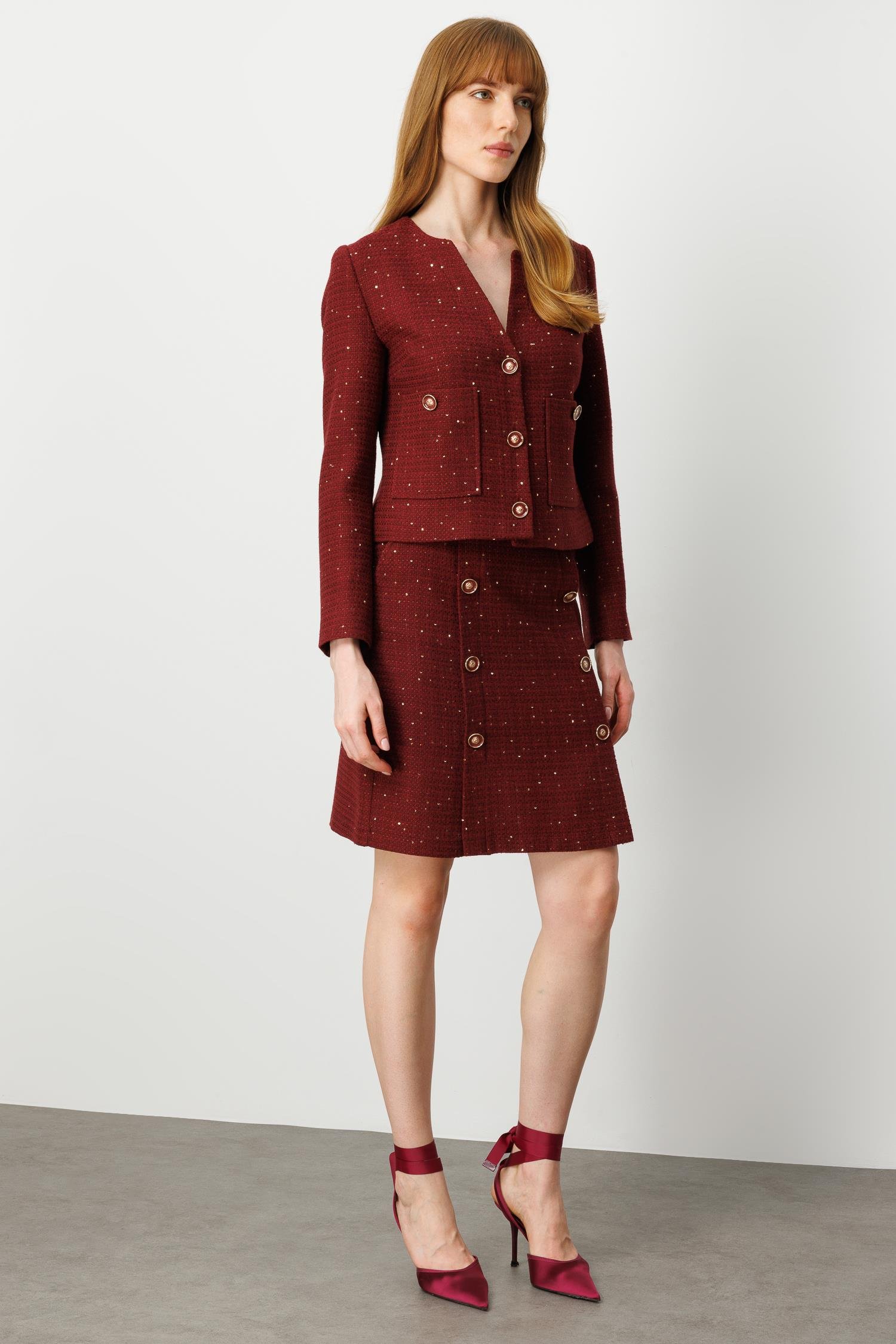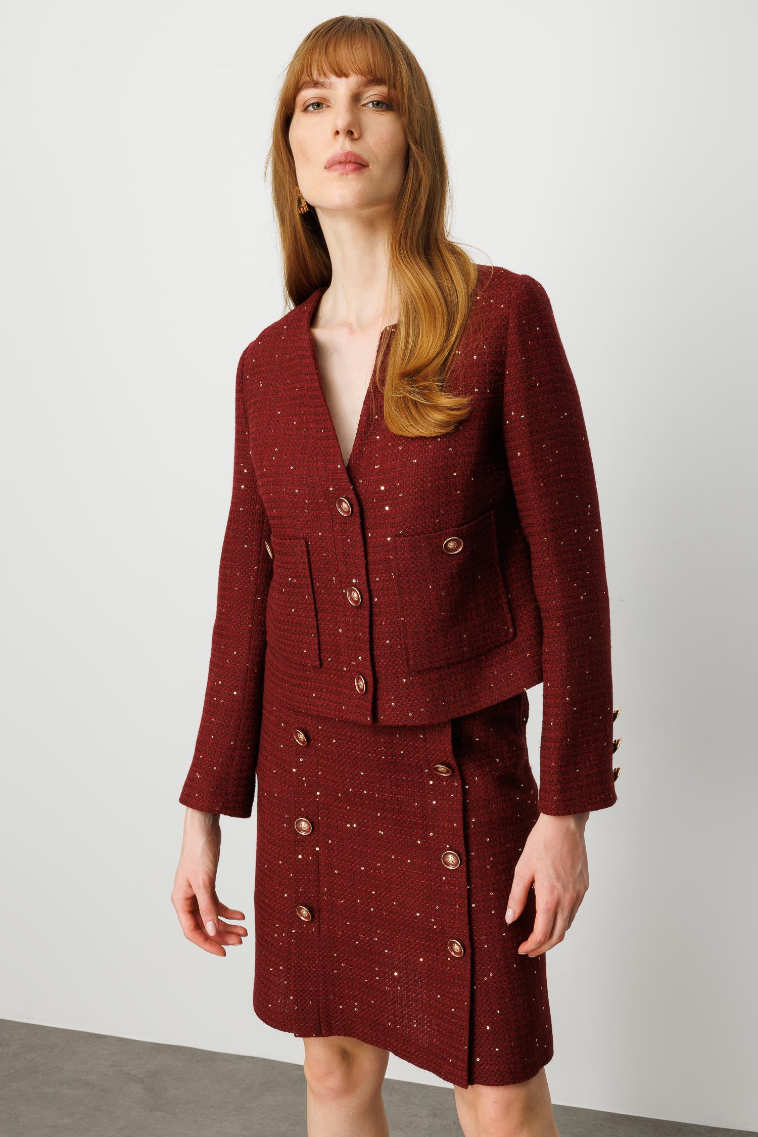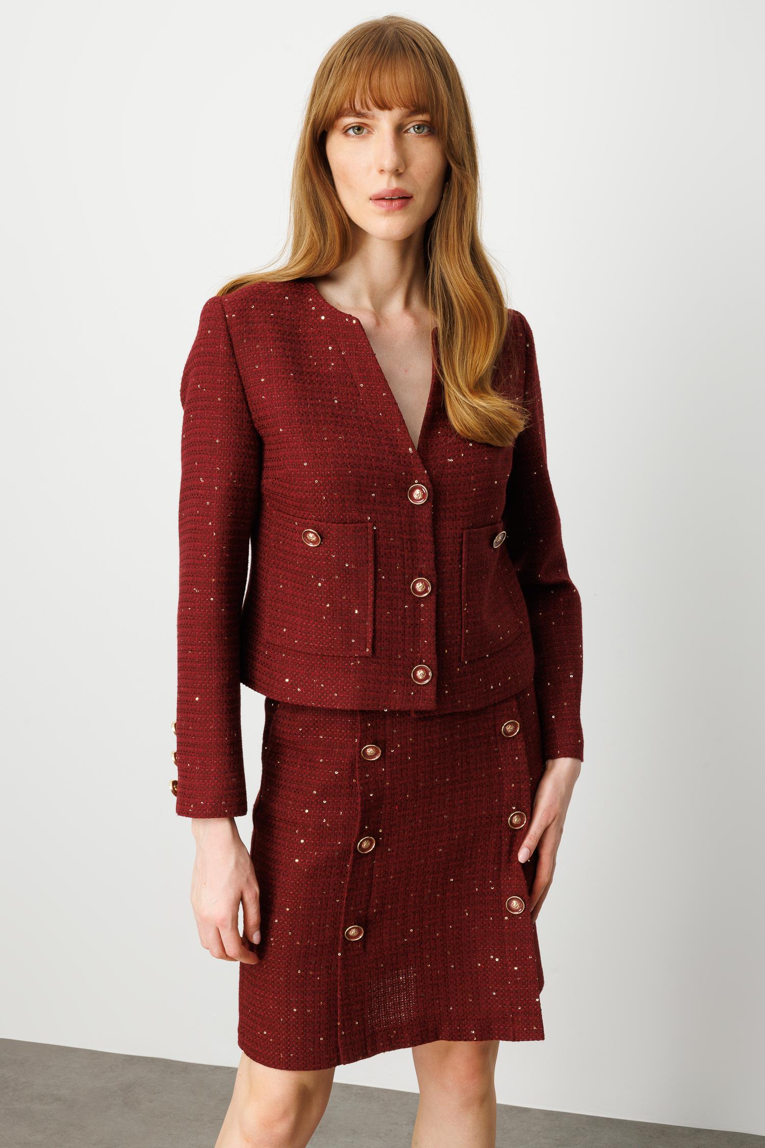 Modailgi V Yaka Düğme Kapamalı Torba Cepli Astarlı Kısa Ceket - Bordo