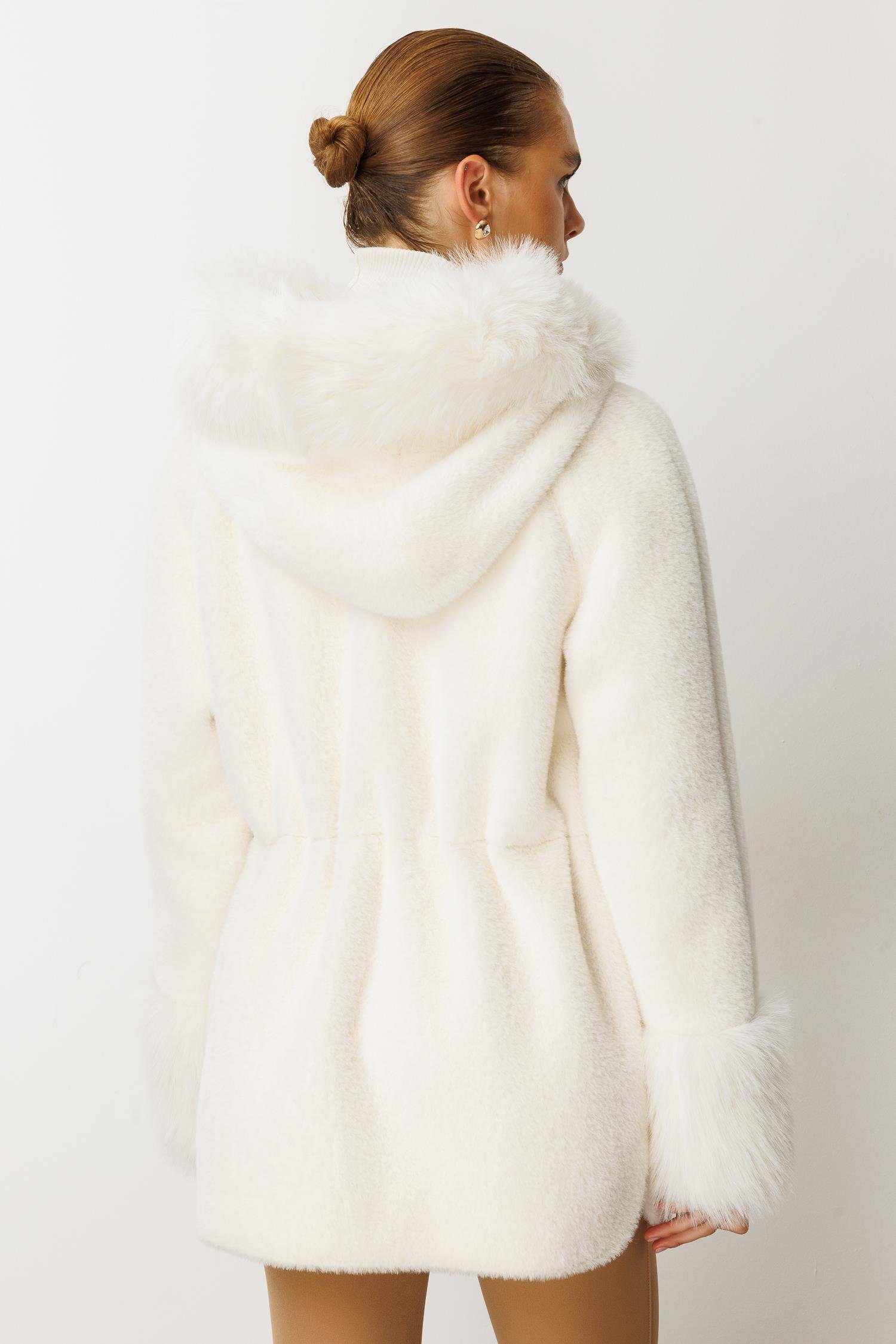 Yaka ve kol manşetlerinde kürk detayları