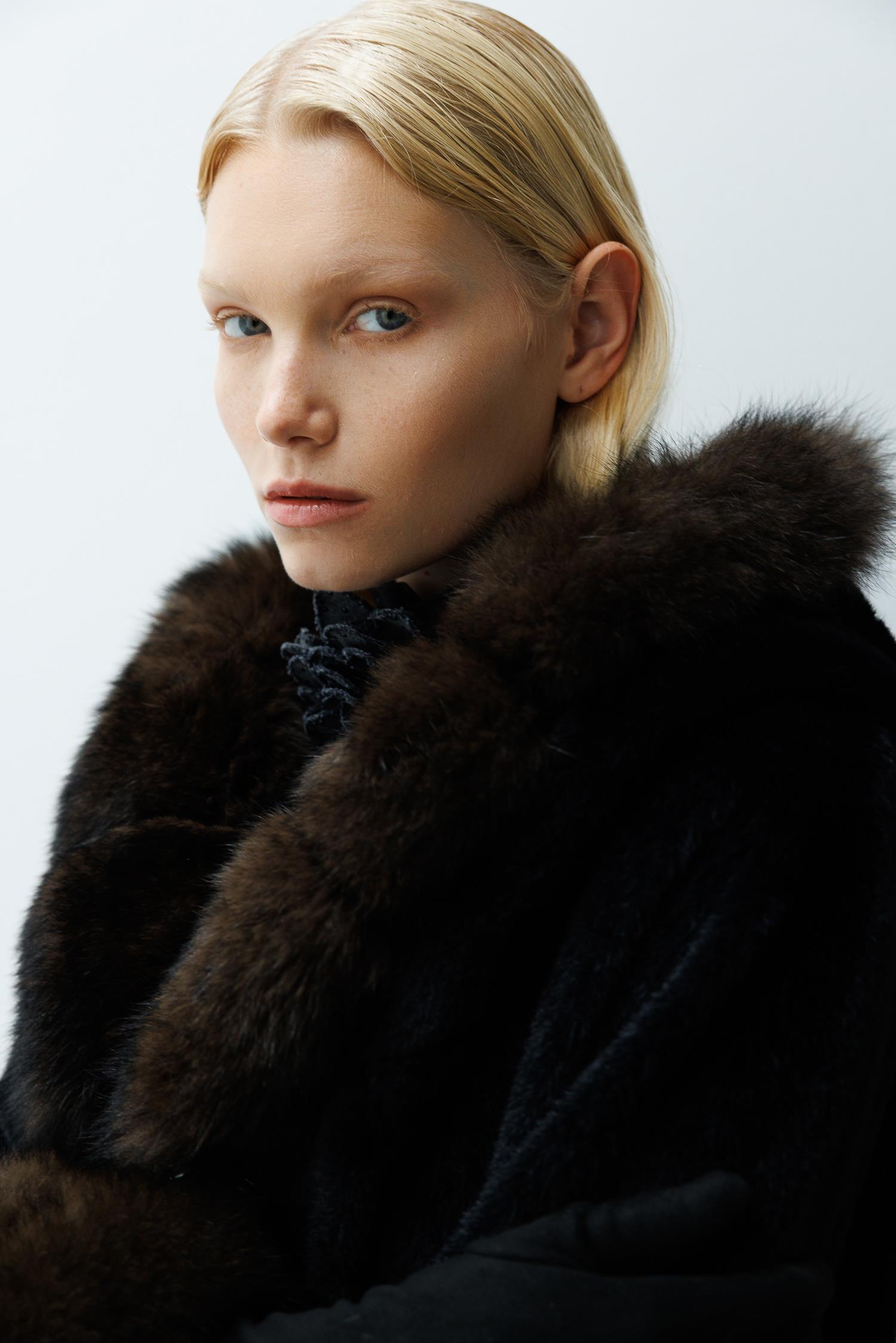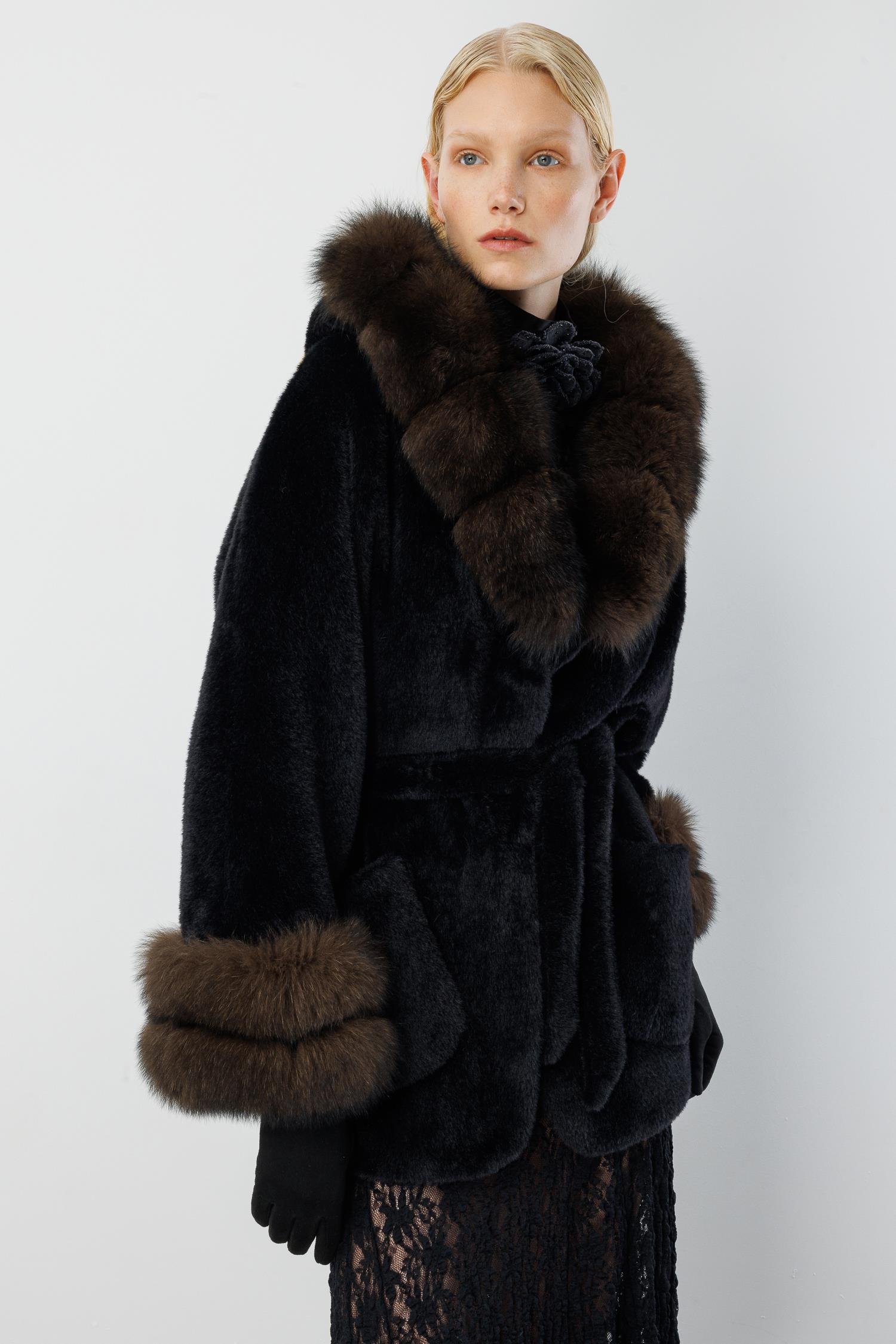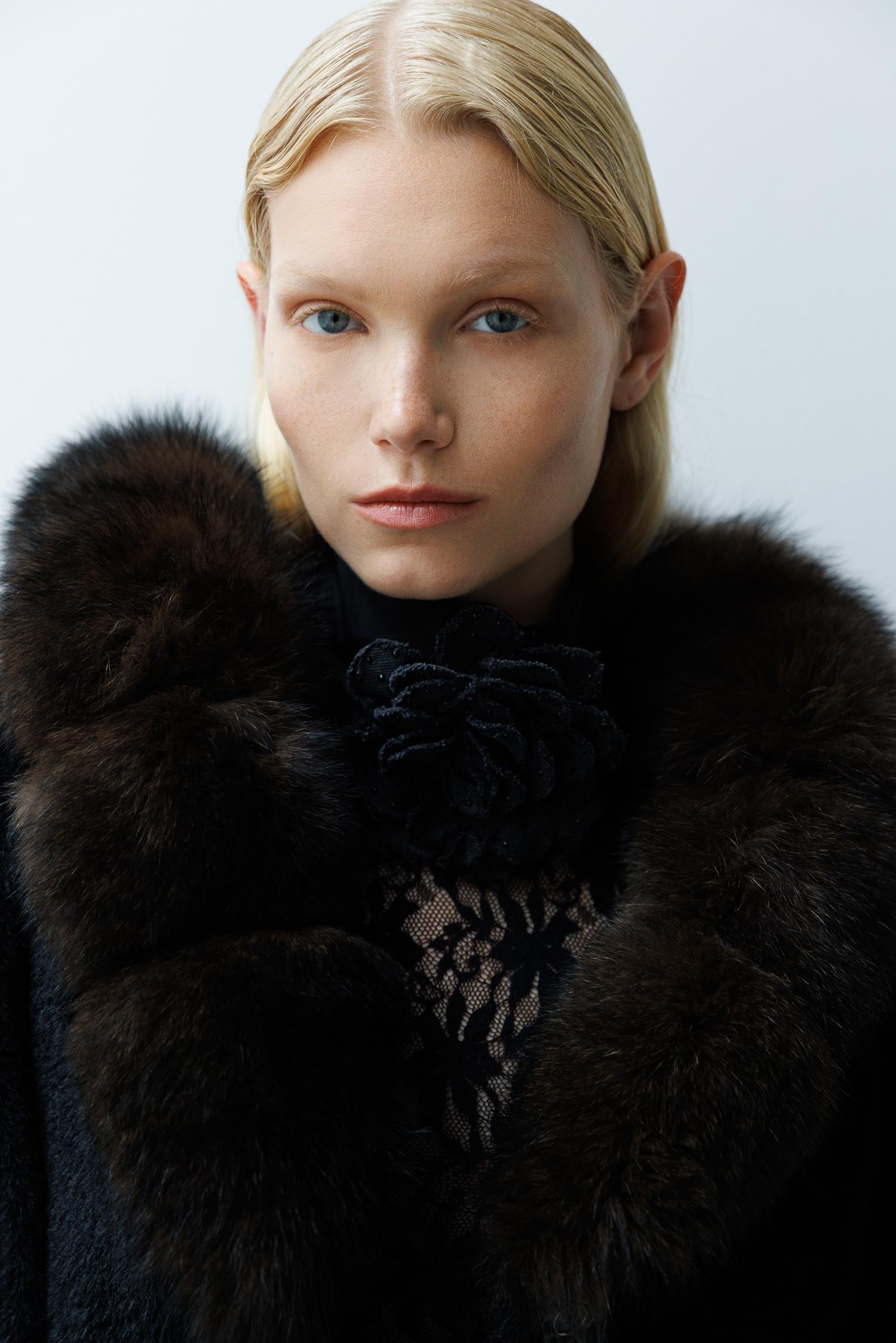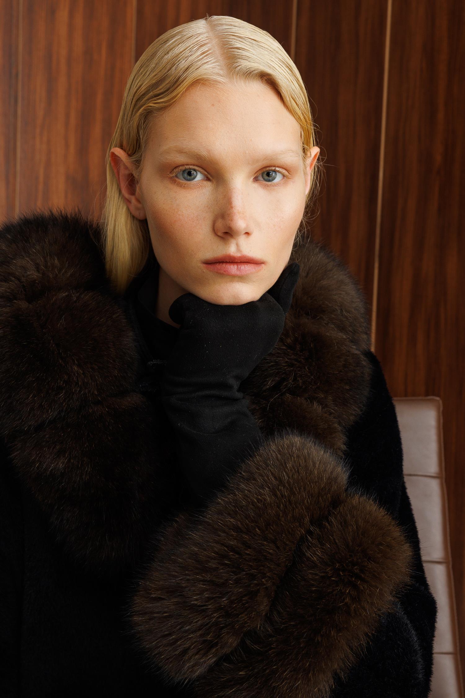 Yaka ve kol manşetlerinde hacimli kürk detayları