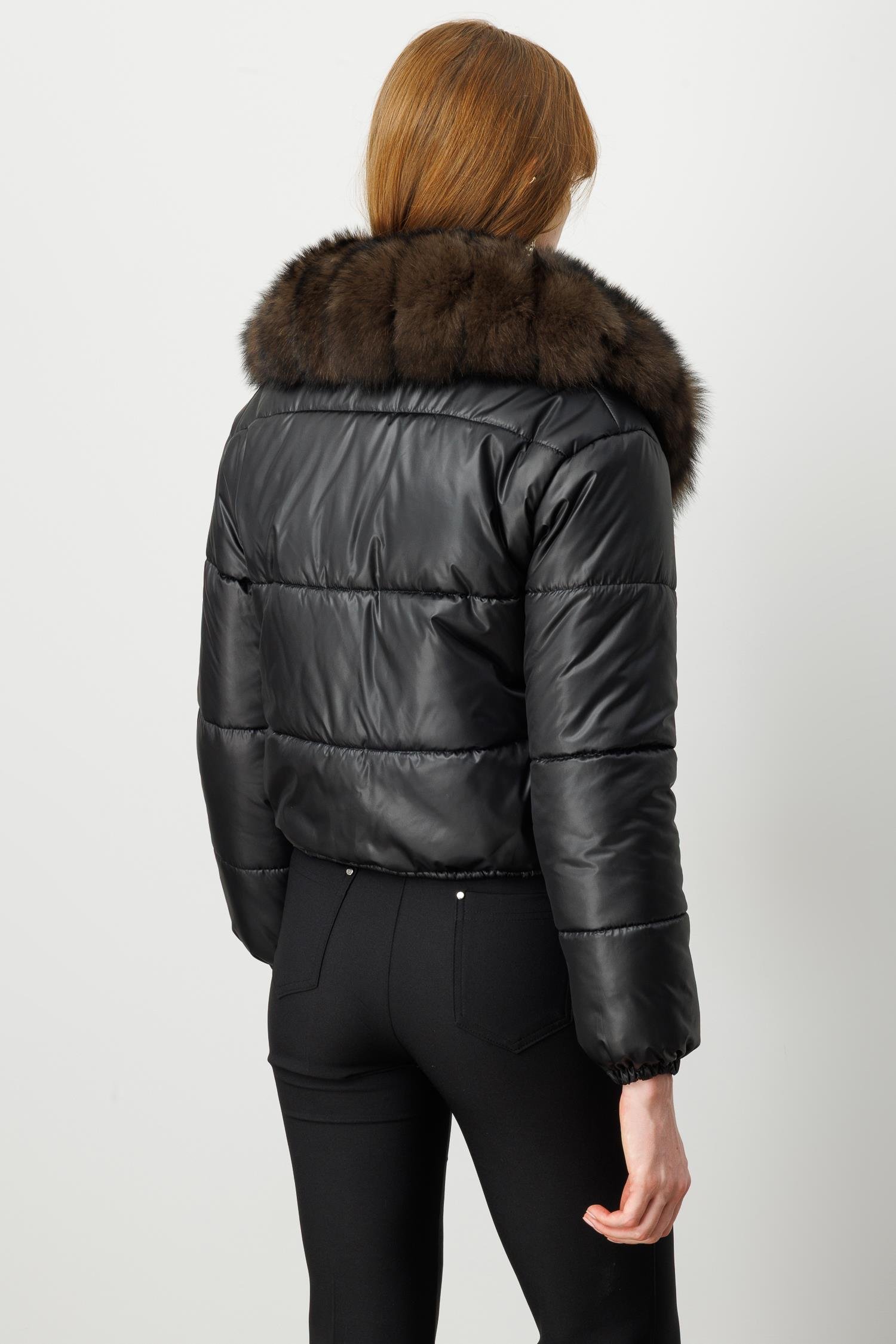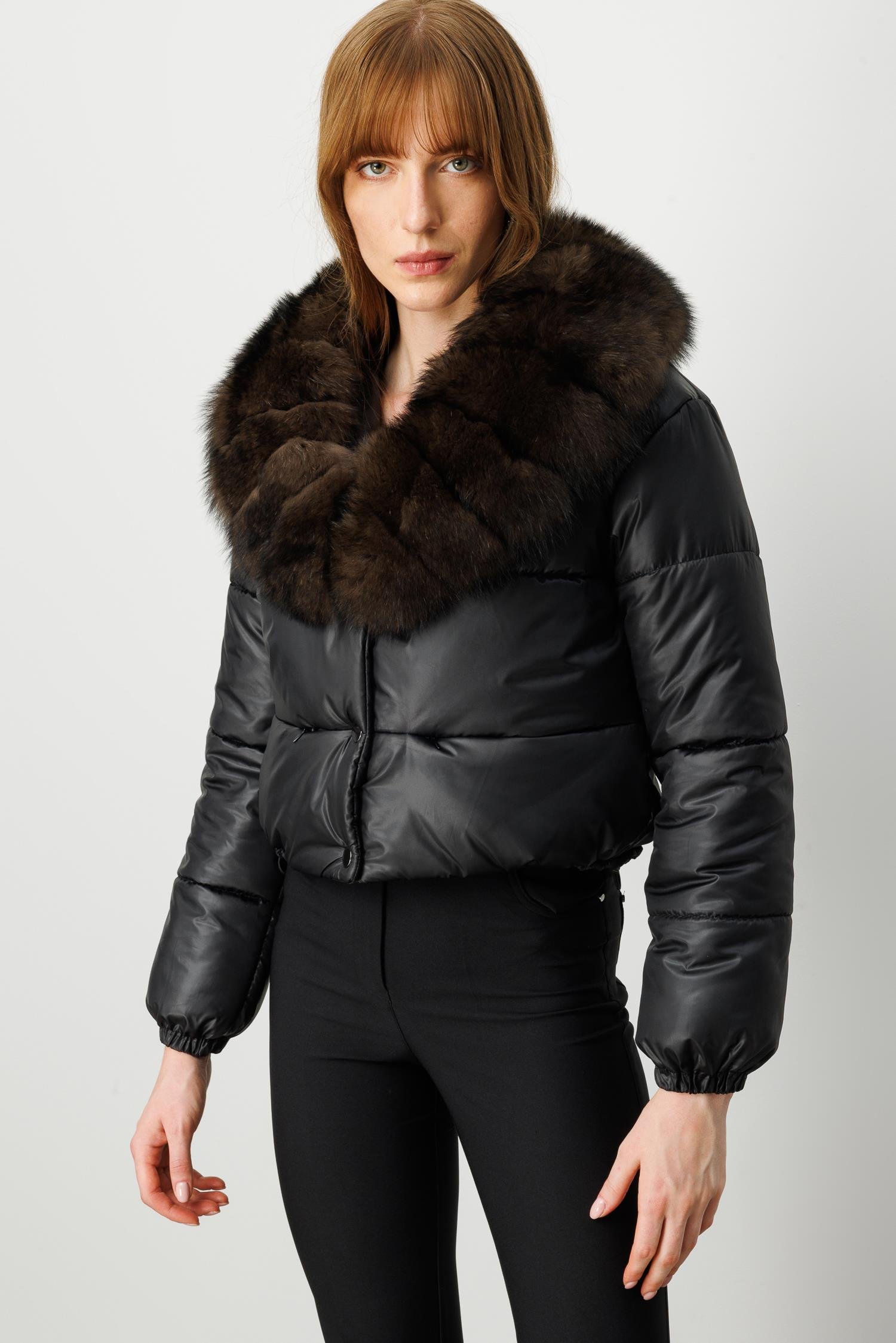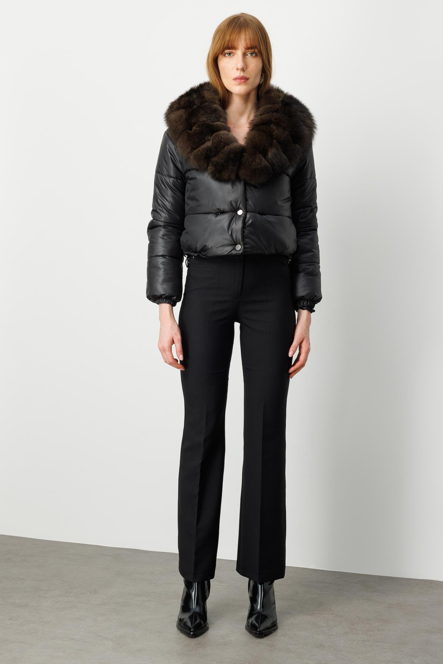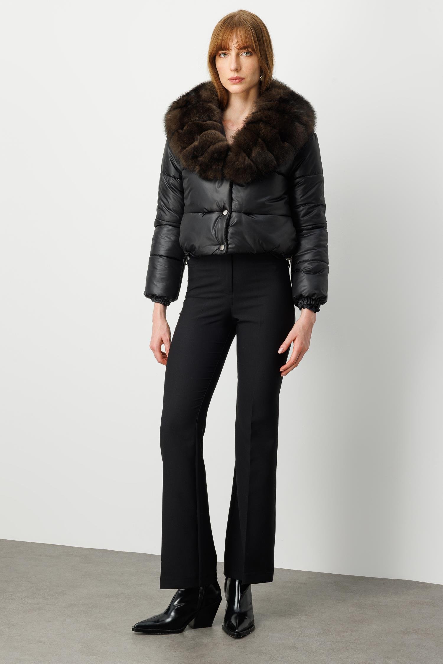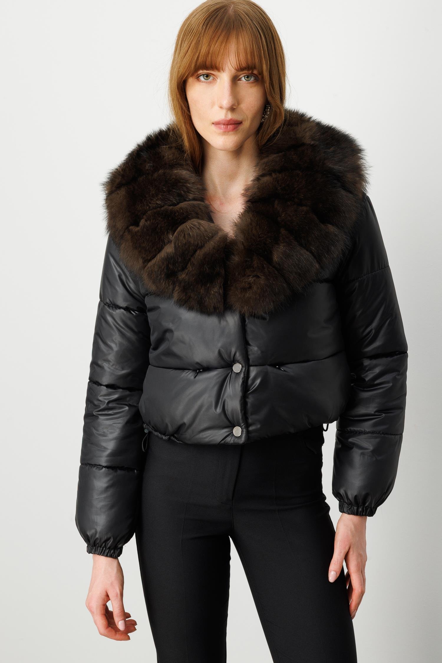 Modailgi Yakası Kürklü Çıtçıtlı Kısa Şişme Kaban - Siyah