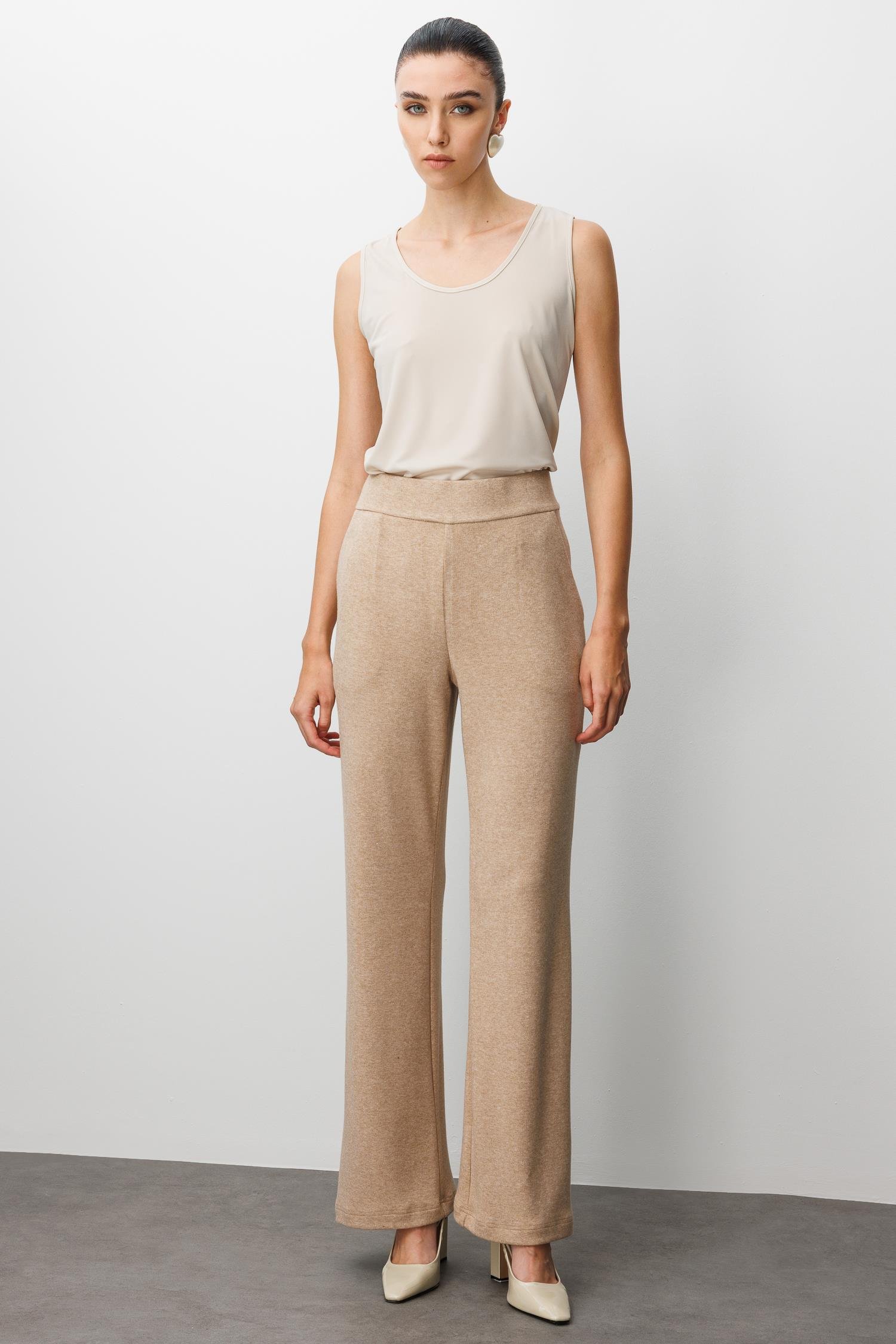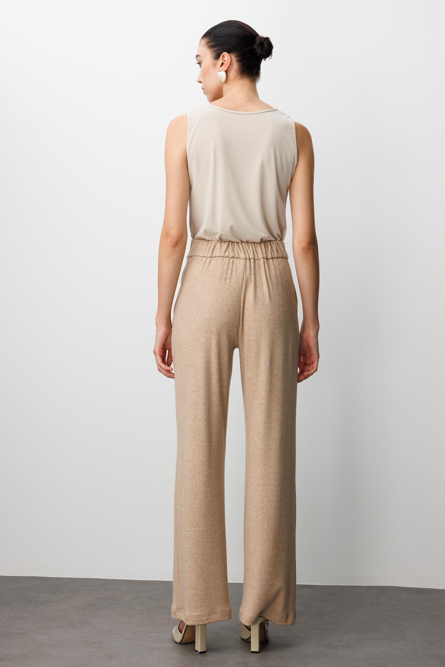Modailgi Yandan Cepli Arka Kemer Lastikli Önden Büzgülü Triko Palazzo Pantolon - Vizon