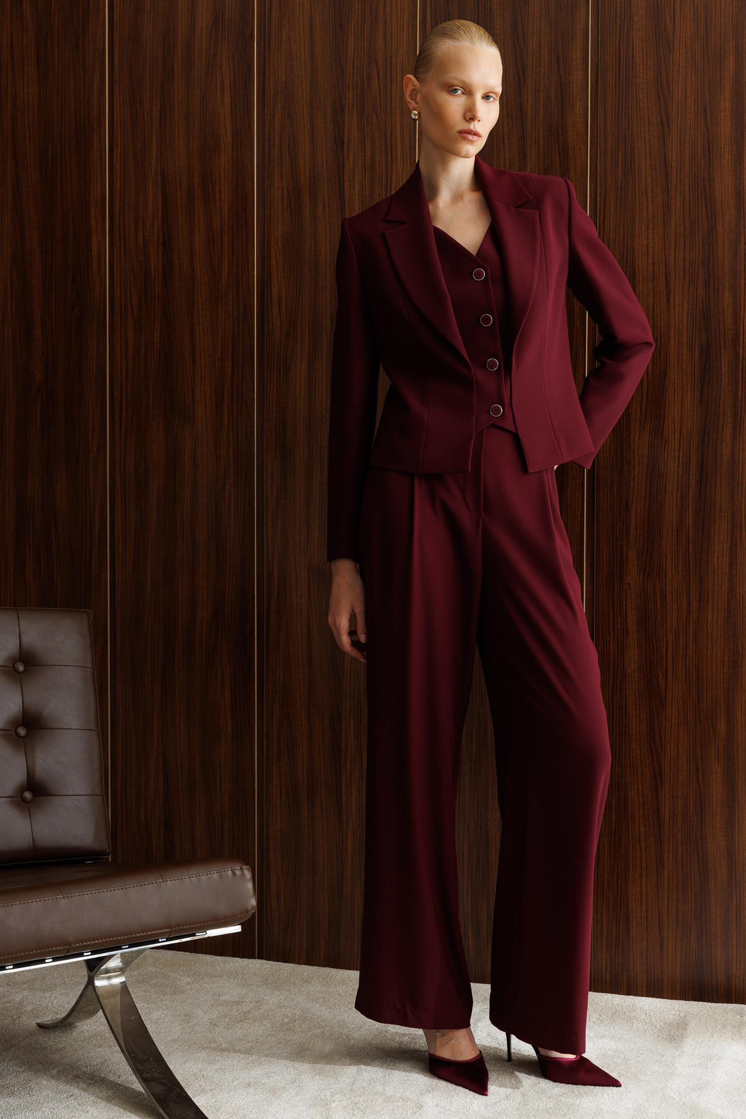 Modailgi’nin şıklık ve rahatlığı buluşturduğu bu pantolon, modern kadınların şehir hayatındaki hızlı temposuna eşlik edecek şekilde tasarlandı. Bordo tonunun zarafeti, pile ve düğme detaylarıyla birleşerek sofistike bir görünüm sunuyor. Günün her anında şık ve güçlü hissetmek isteyen kadınlar için yaratıldı.