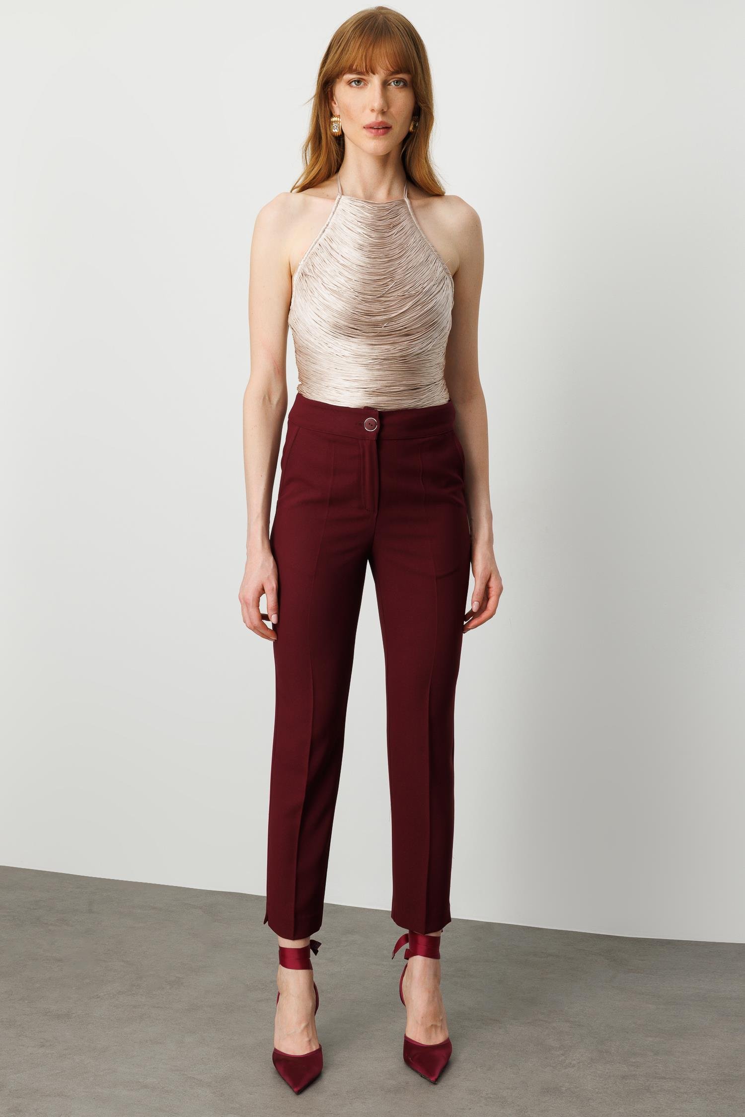 Modailgi Yandan Cepli Yüksek Bel Bilek Boy Klasik Pantolon – Bordo