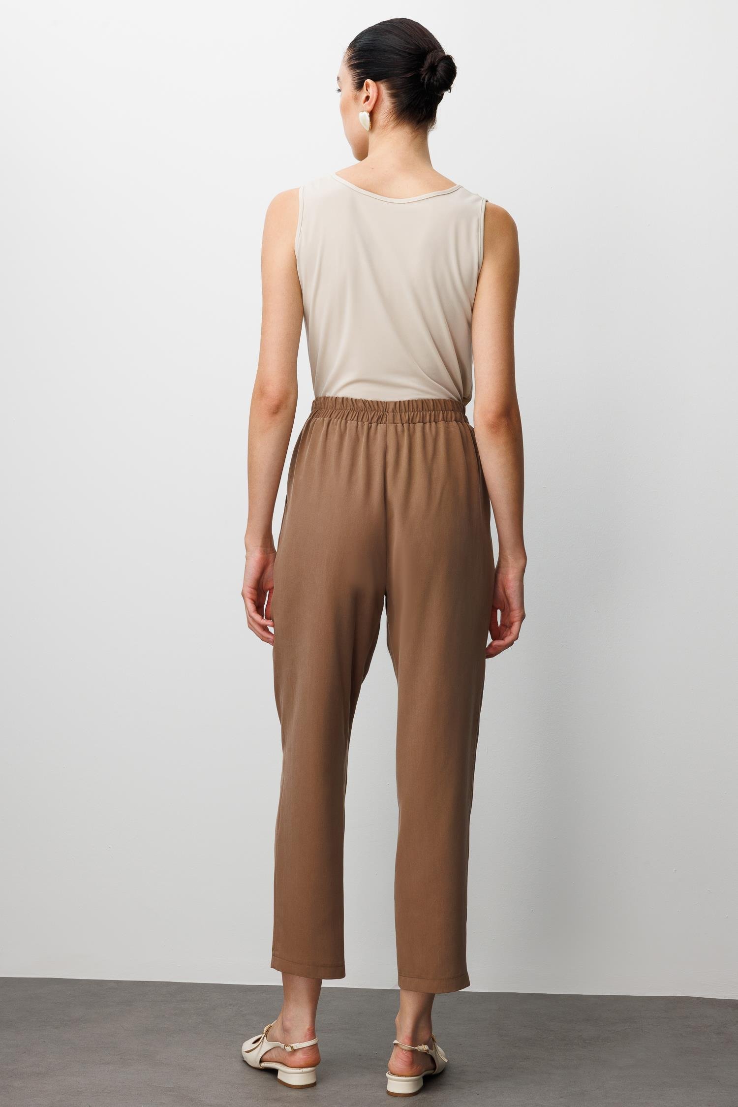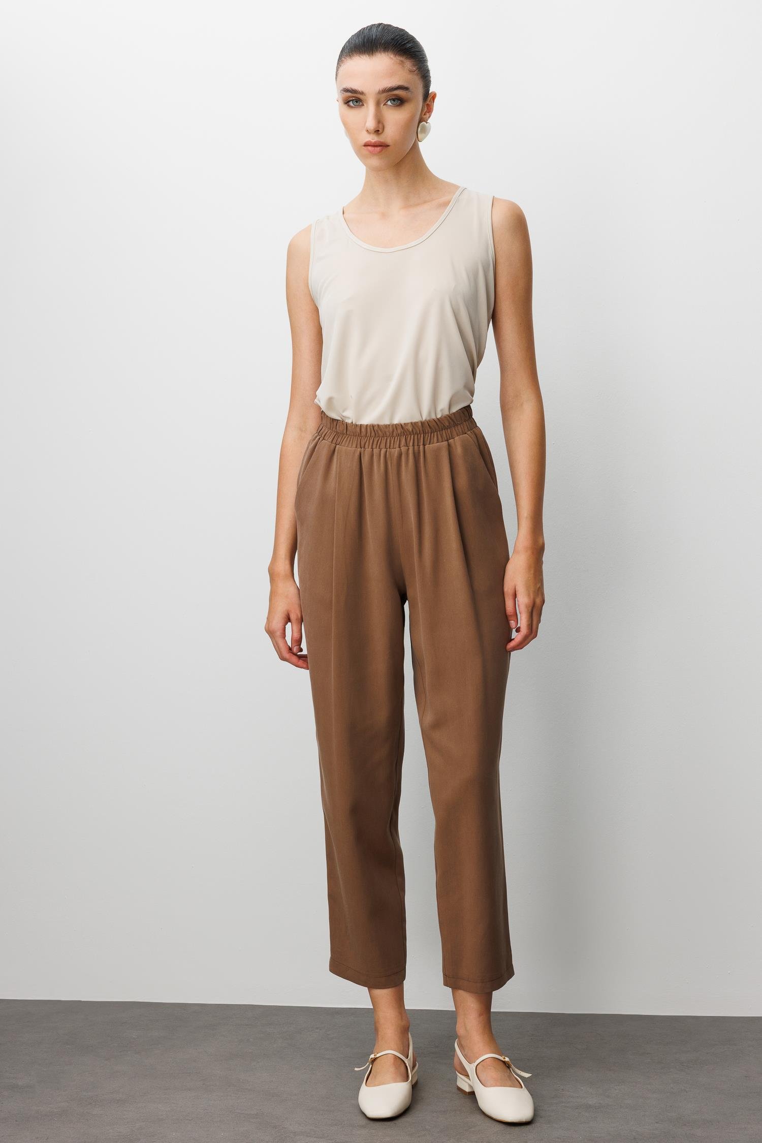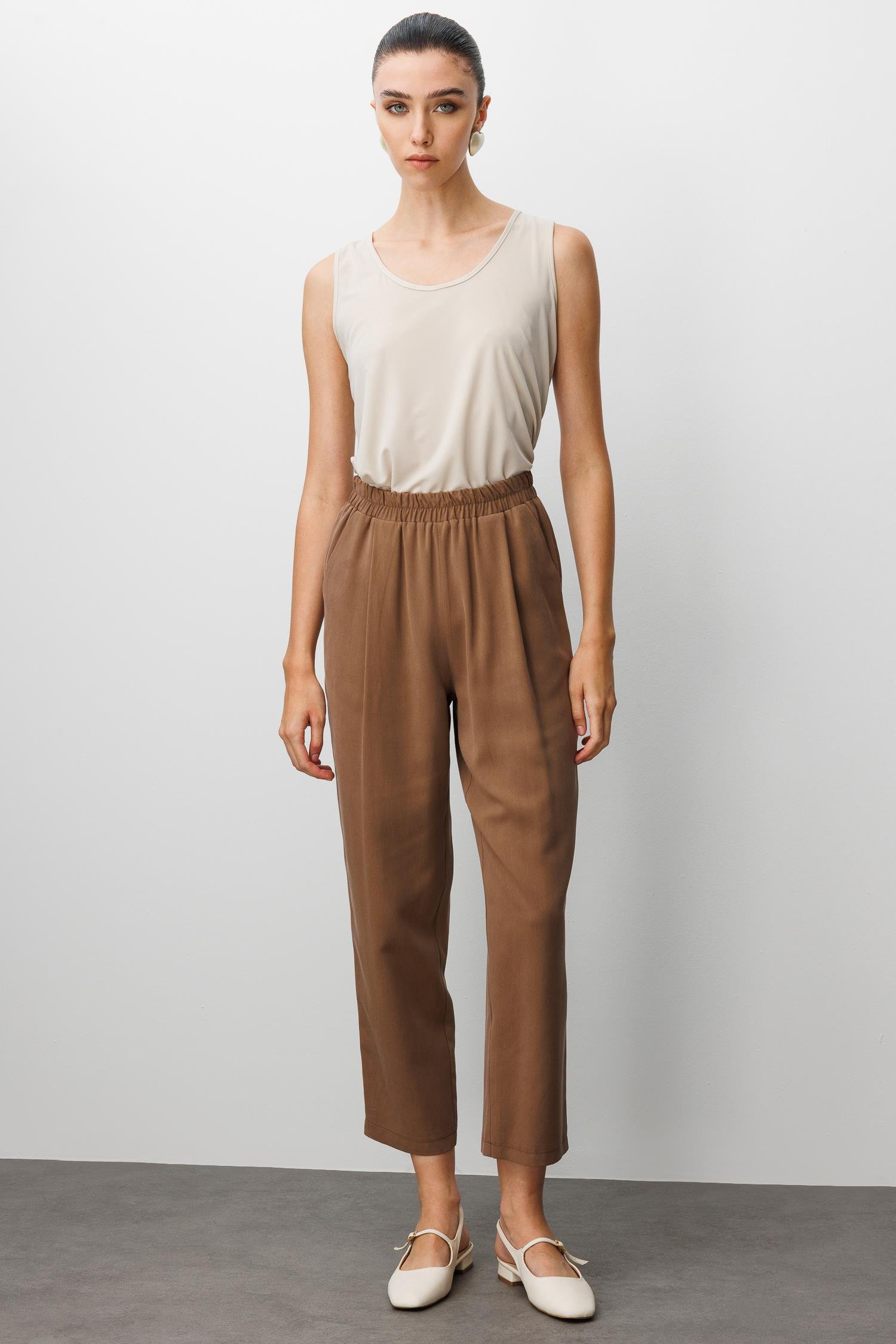 Modailgi Yüksek Bel Lastikli Yandan Cepli Pileli Pantolon – Vizon (15040)