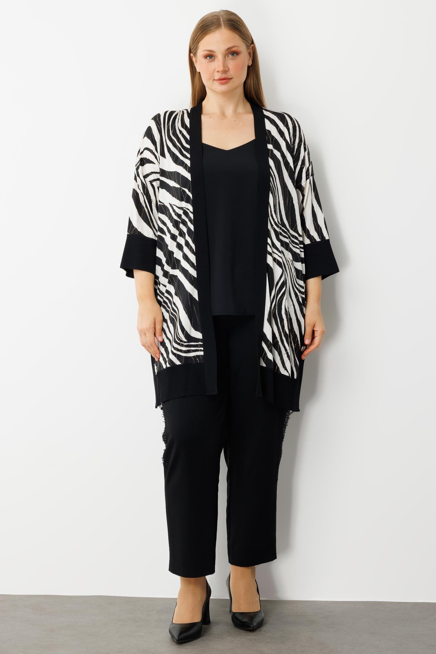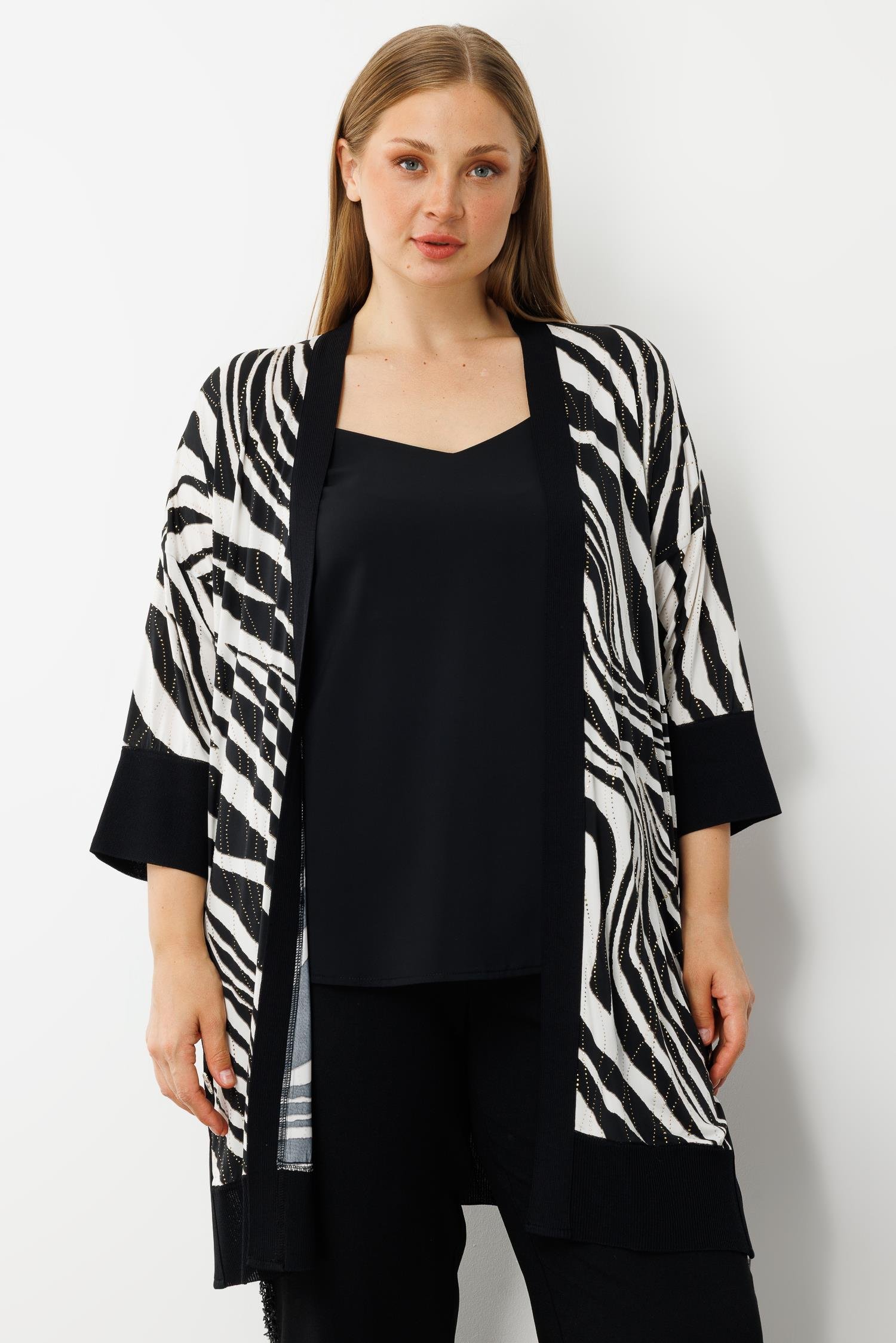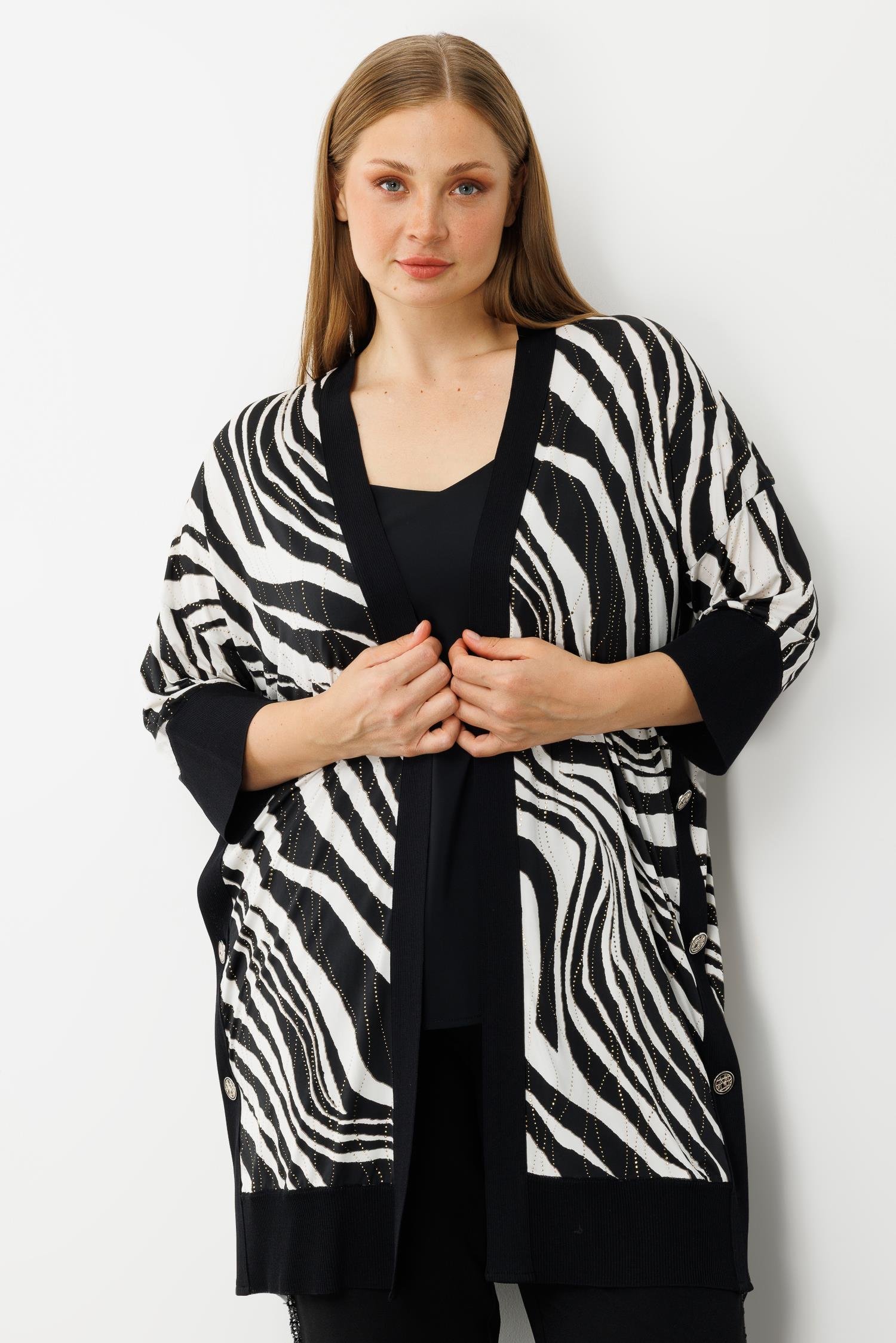 Modailgi Zebra Desen Düğme Detaylı Ribanalı Uzun Ceket Zebra (GLD260CKT90002-343)