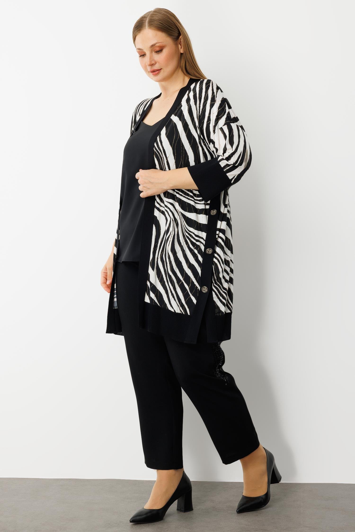 Modailgi  Zebra Desen Düğme Detaylı Ribanalı Uzun Ceket Zebra