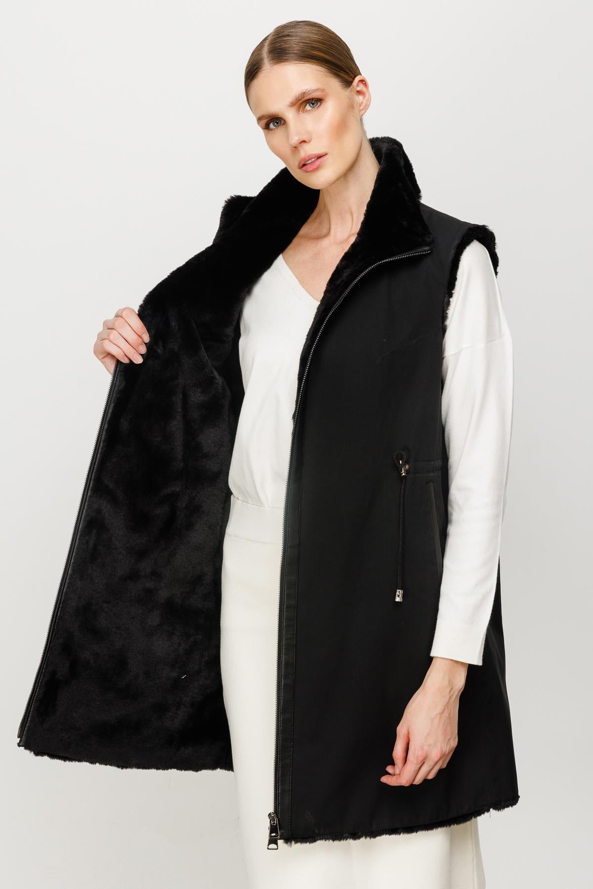Mutlu Ertan Kadın Çift Taraflı Peluş Yelek Siyah 30208 (30208)