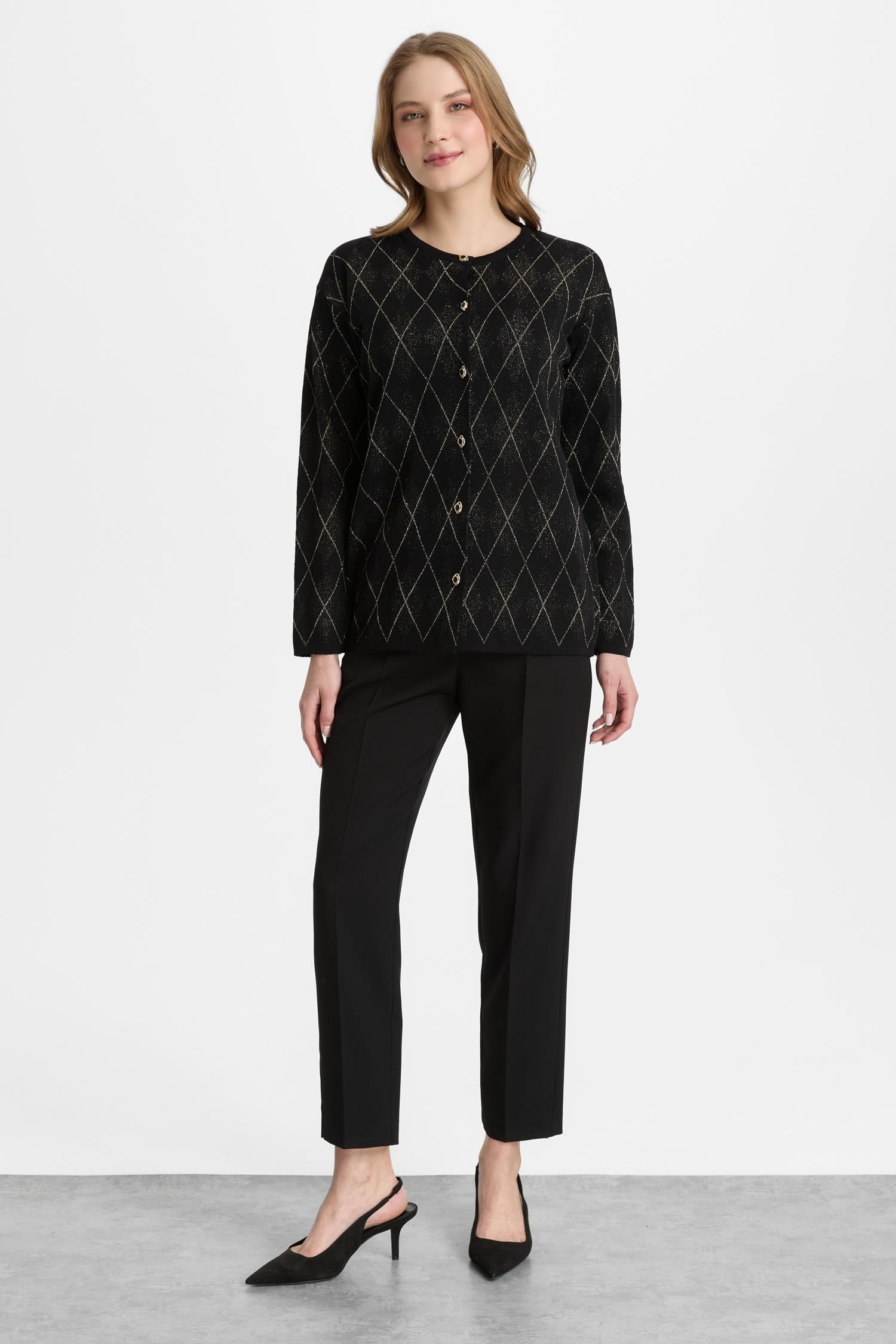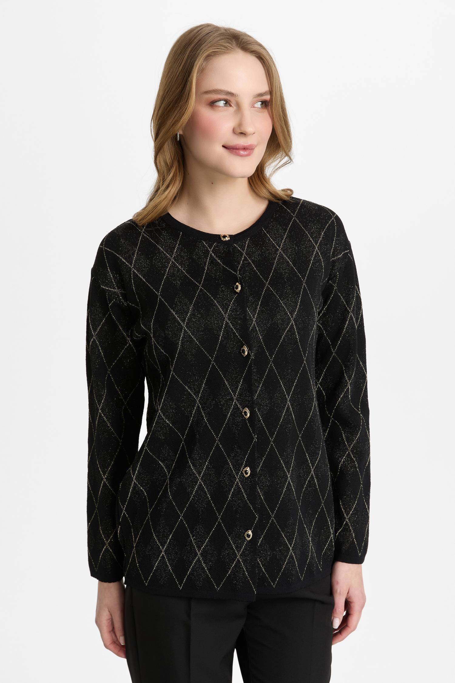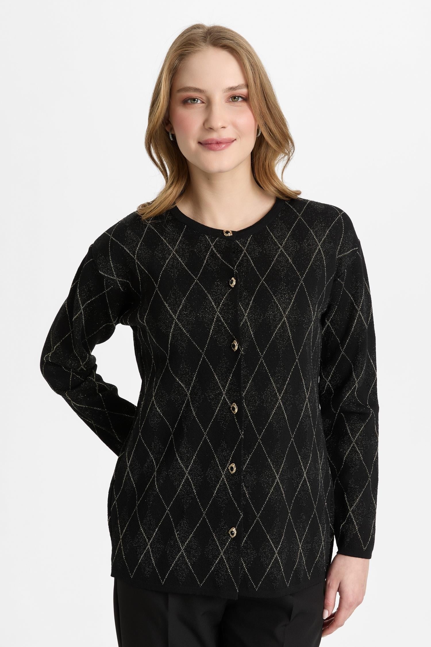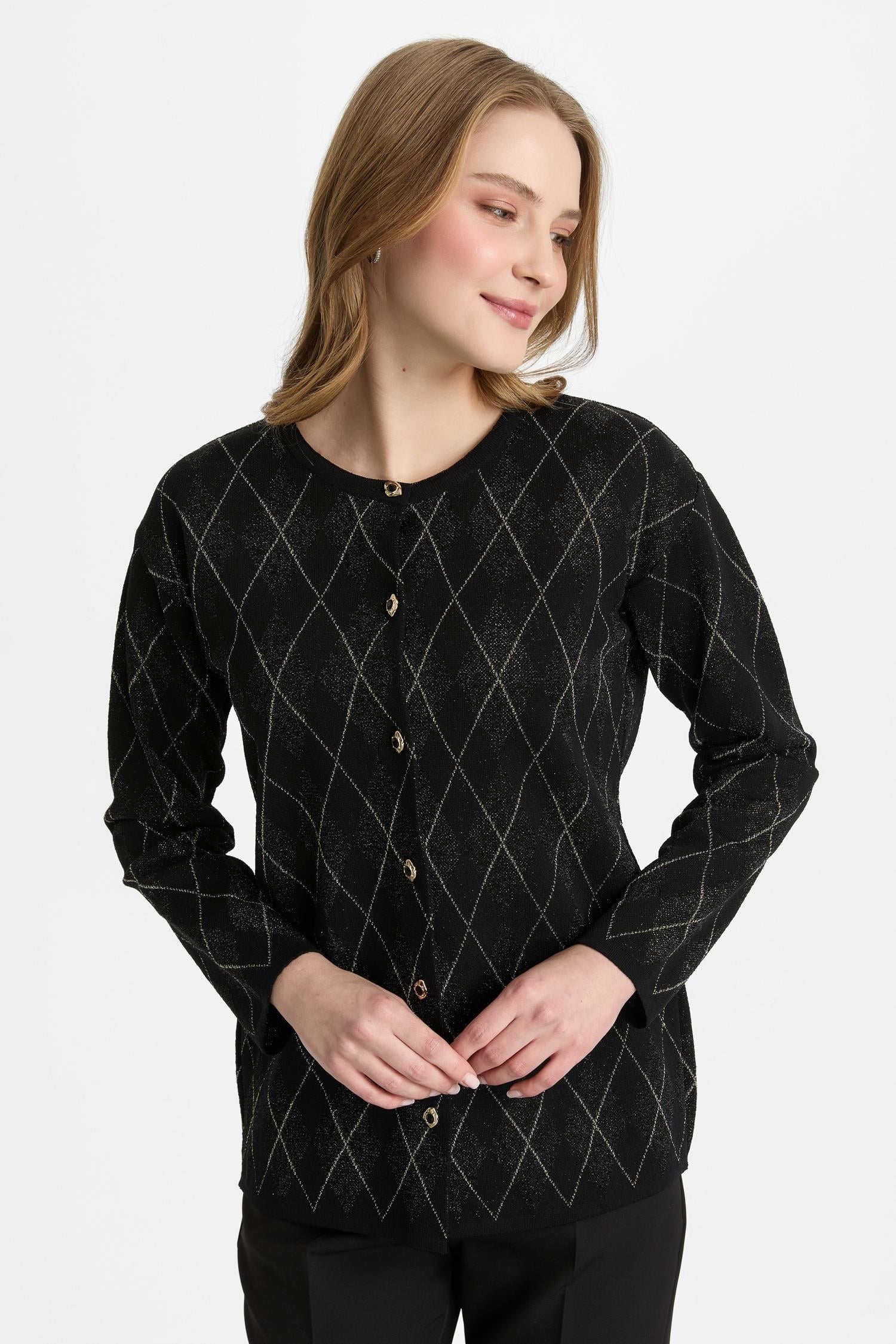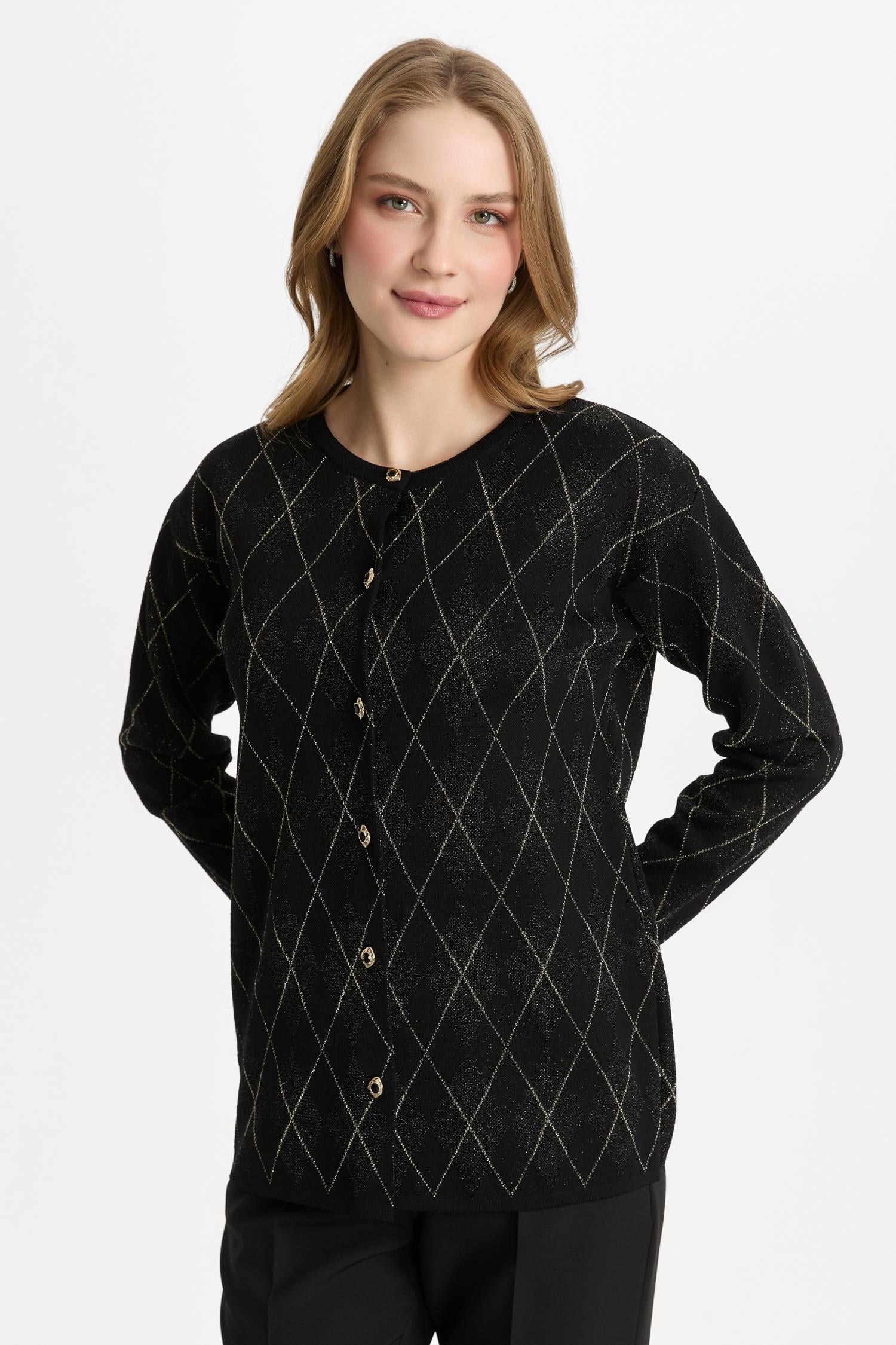 Mutlu Ertan Kadın Simli Baklavalı Düğmeli Hırka Siyah 20324