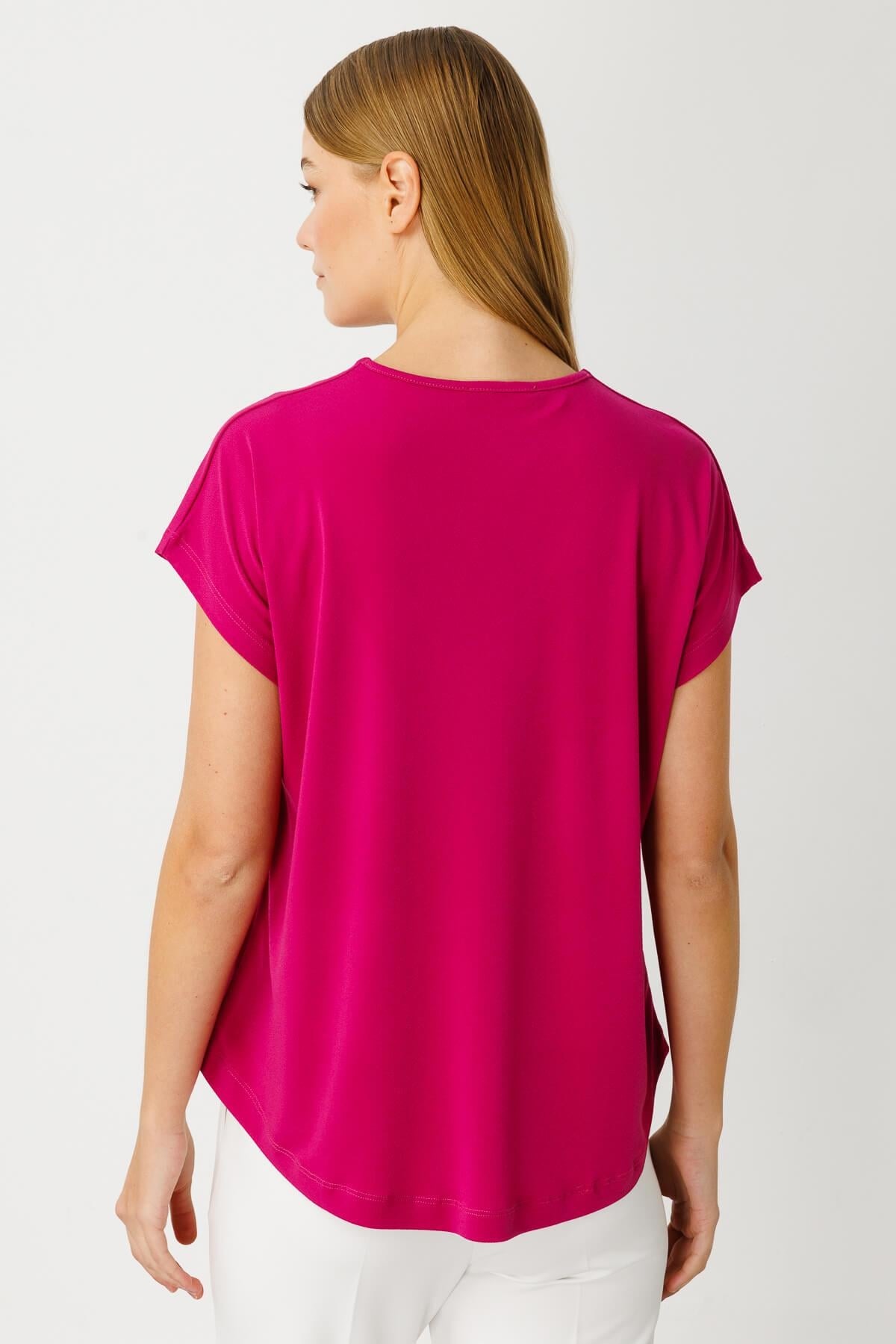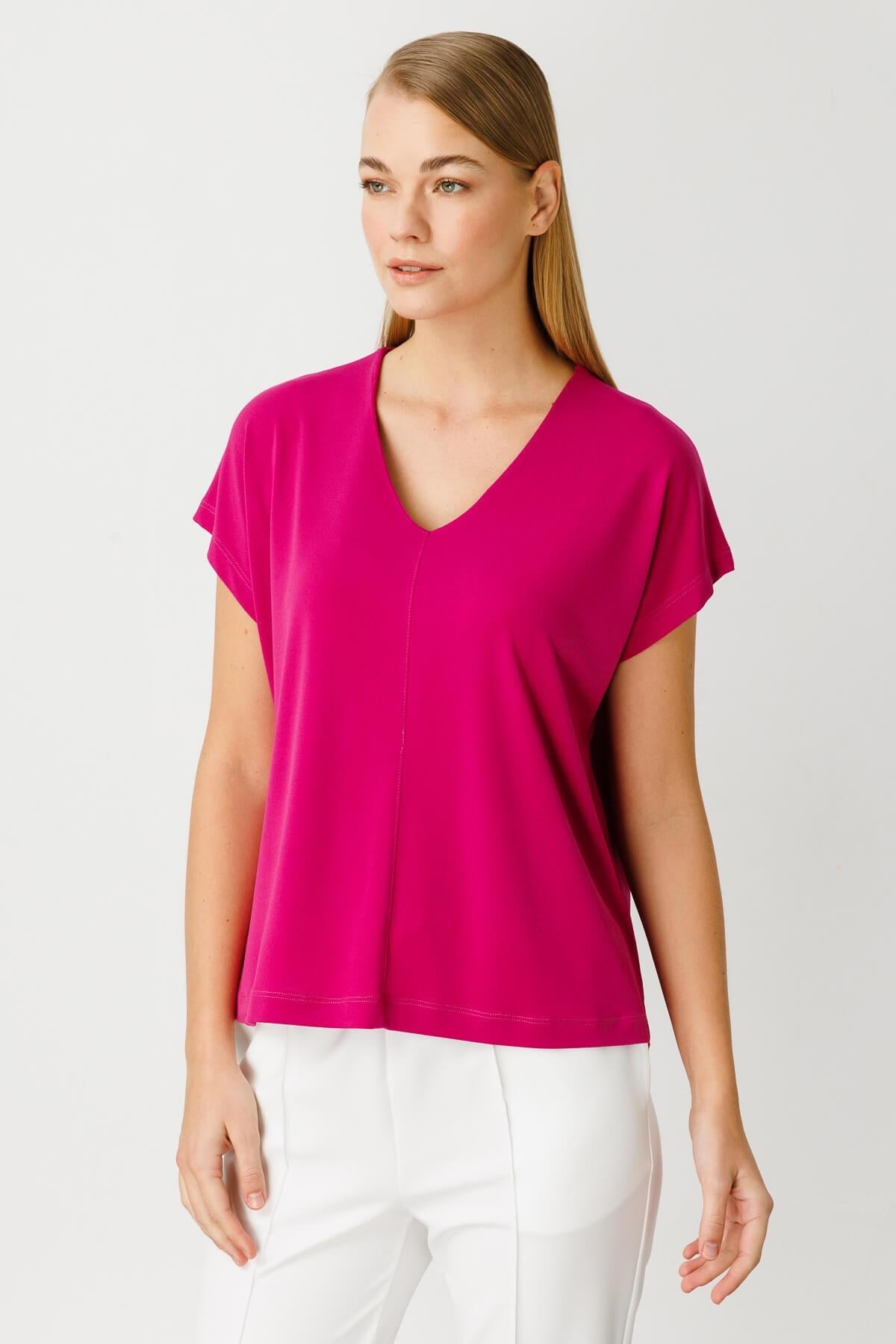 Mutlu Ertan Kadın V Yaka Basic Bluz Fuşya 30175 (30175)
