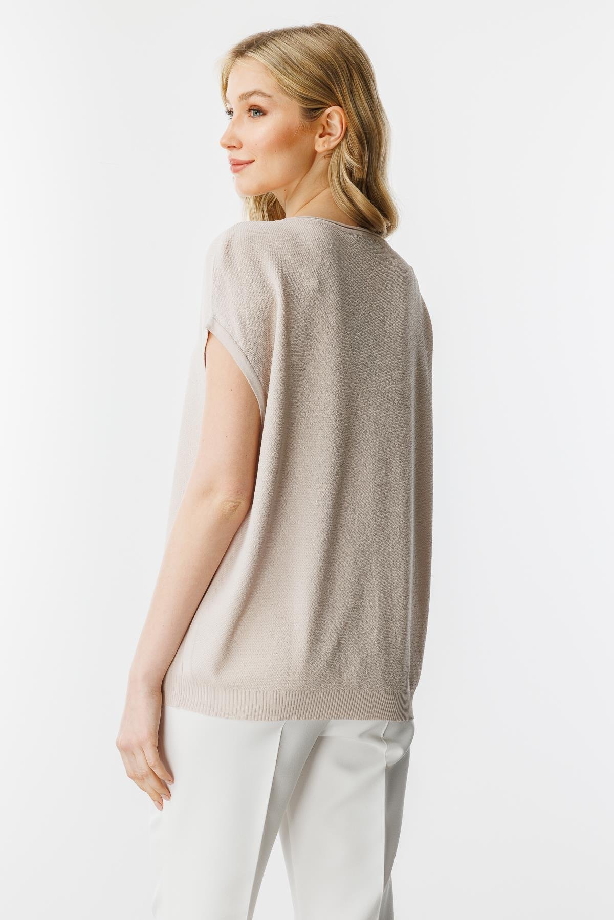 Triko Kolsuz Bluz (GTIP:6106.20.00.00.00)-BEJ (20098-BJ-STD)